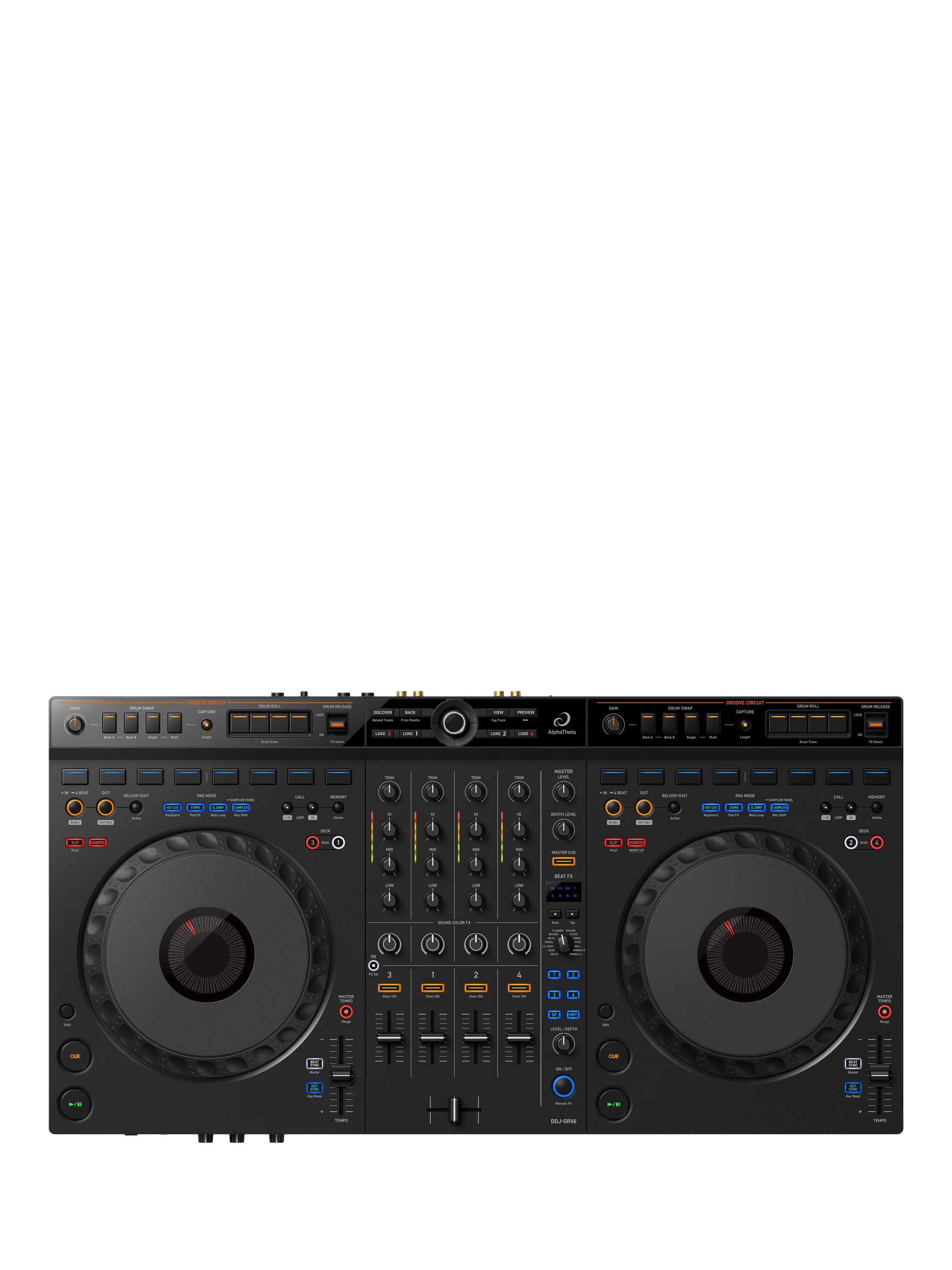 AlphaThetaDDJ-GRV6 4-channel Performance DJ Controller, Black/Grey