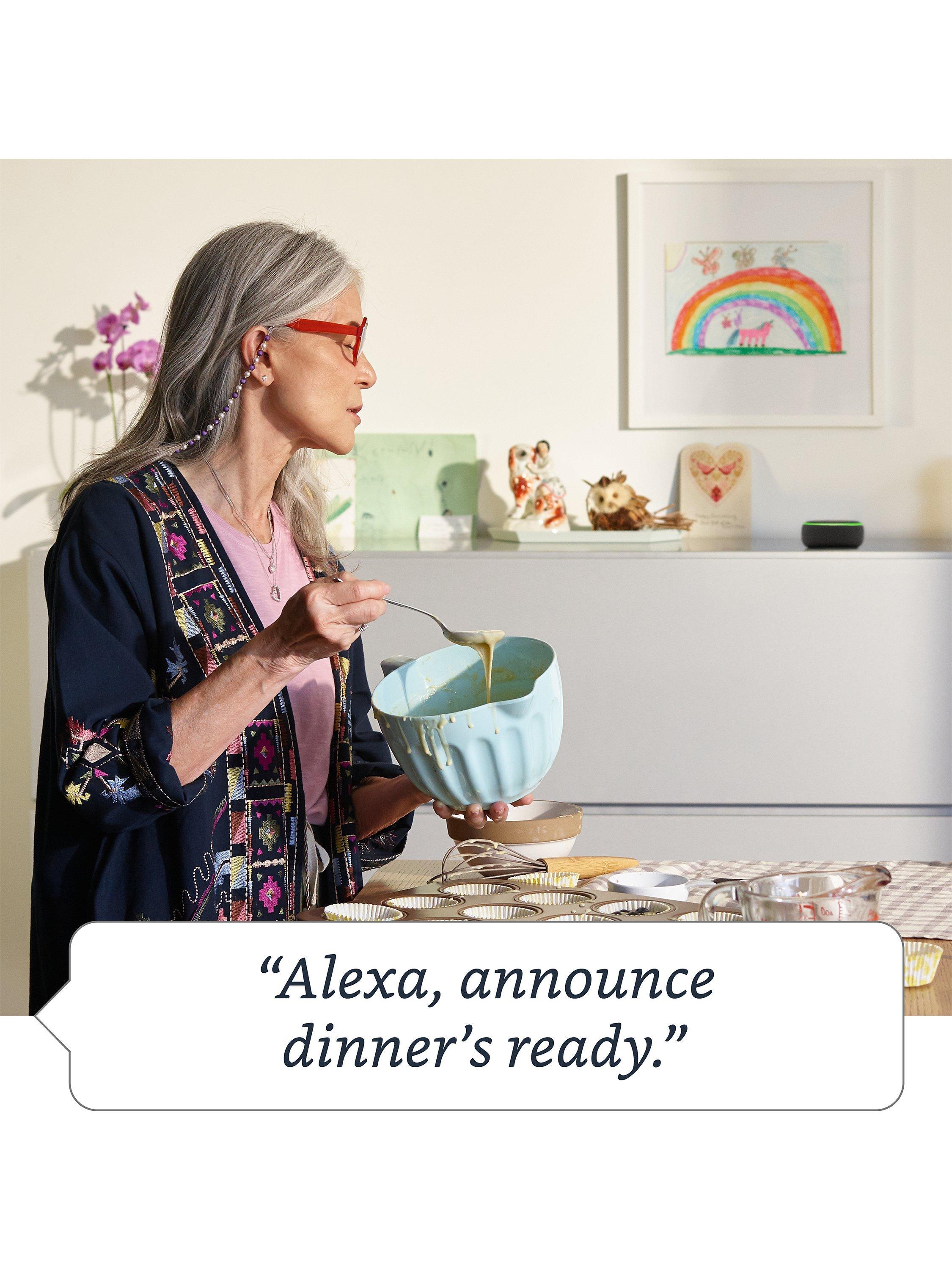 Call anyone with an Echo device or the Alexa App hands-free using your voice. Use Drop In to quickly connect to another compatible Echo device at home or send an announcement across Echo devices, like calling the family for dinner or reminding the kids to go to sleep.