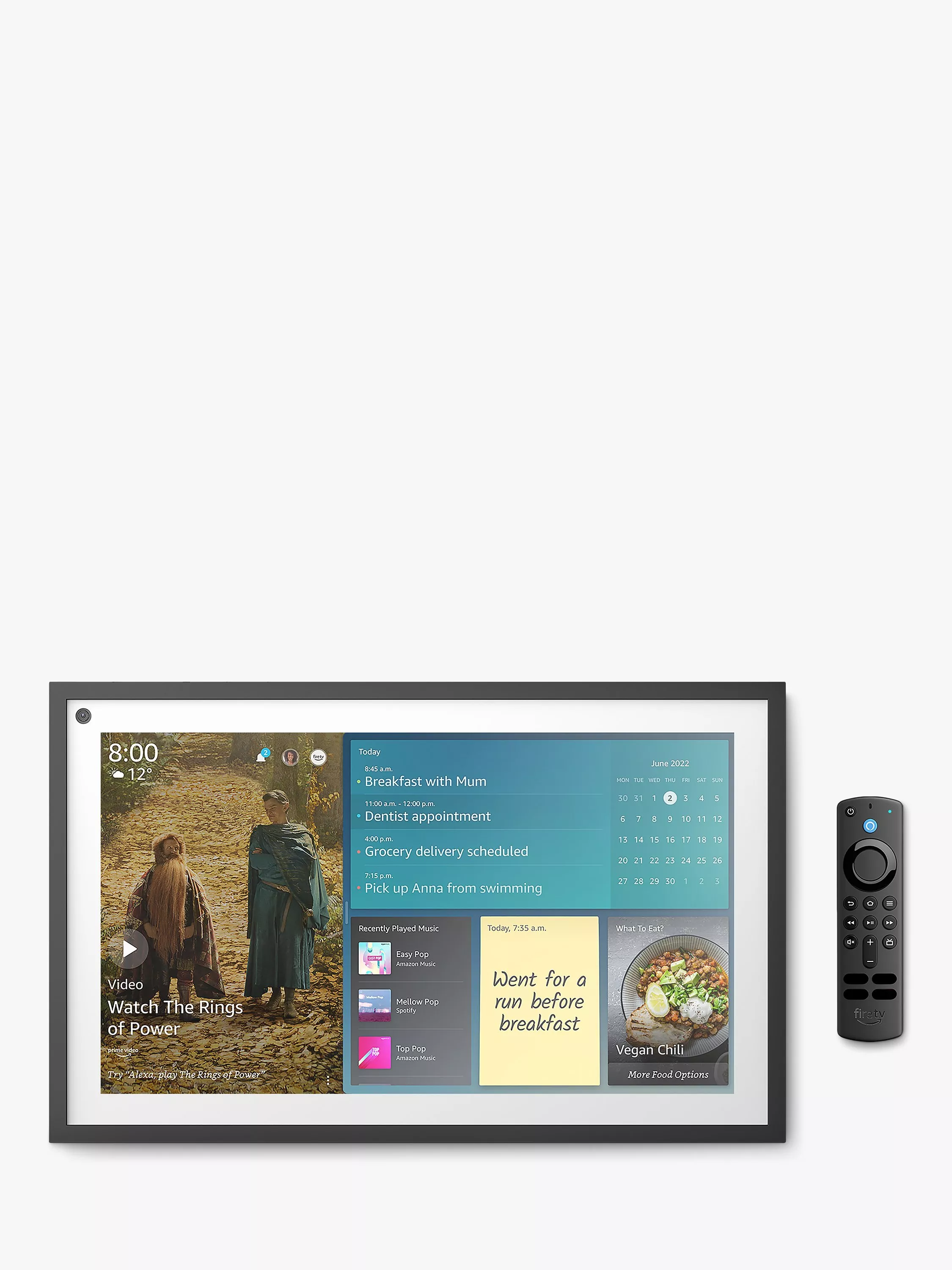A 15.6" Full HD display and a 5MP camera ensure your family organisation and entertainment look great. Use Alexa-powered widgets to organise the family with calendars, personal notes, to-do lists, shopping lists and reminders. And you can get daily meal ideas, follow recipes hands-free, and add ingredients to your shopping list.