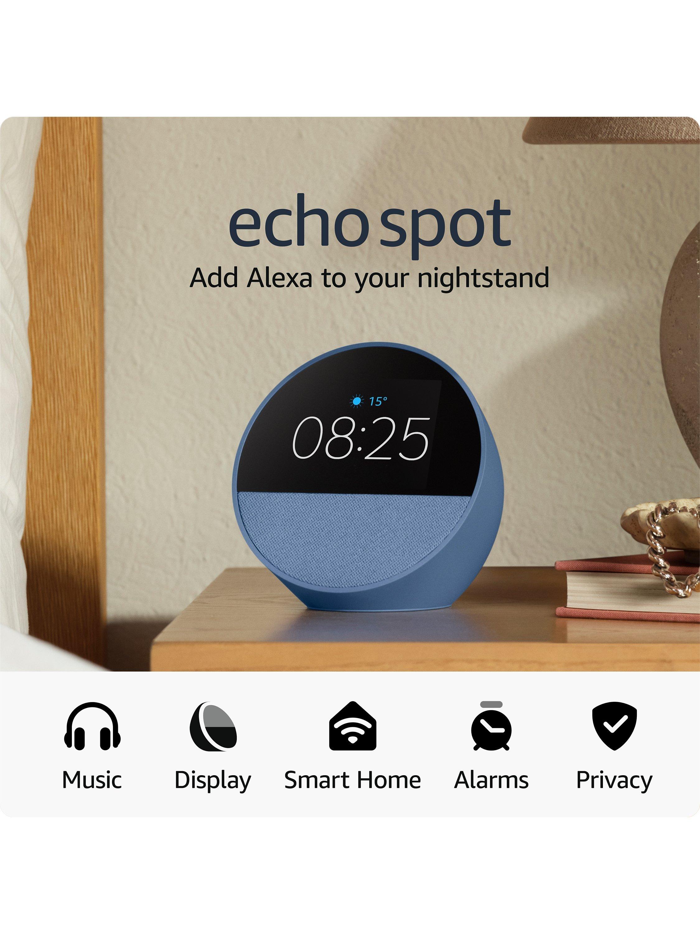 AmazonEcho Spot (2024) Smart Alarm Clock with 2.8” Screen & Alexa Voice Recognition & Control, Blue