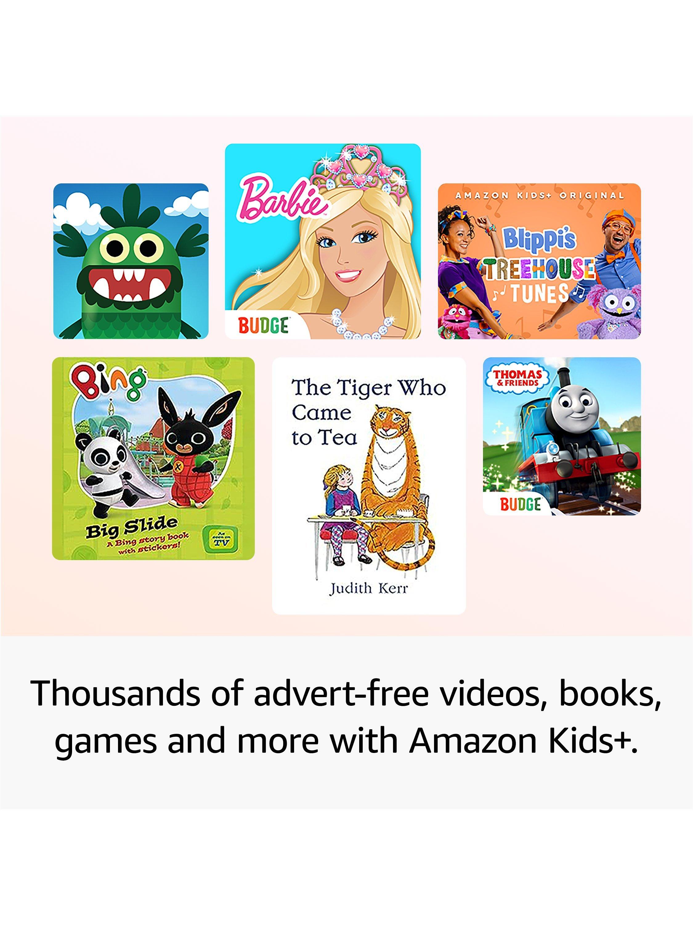 Amazon Kids+ (formerly Fire for Kids) is an all-in-one subscription with thousands of books, movies, TV shows, educational apps, games and Audible audiobooks for kids aged 3–12. There are Age Filters to ensure kids see age-appropriate content. Parents are able to temporarily download a limited number of video titles across devices linked to your Amazon Kids+ subscription.