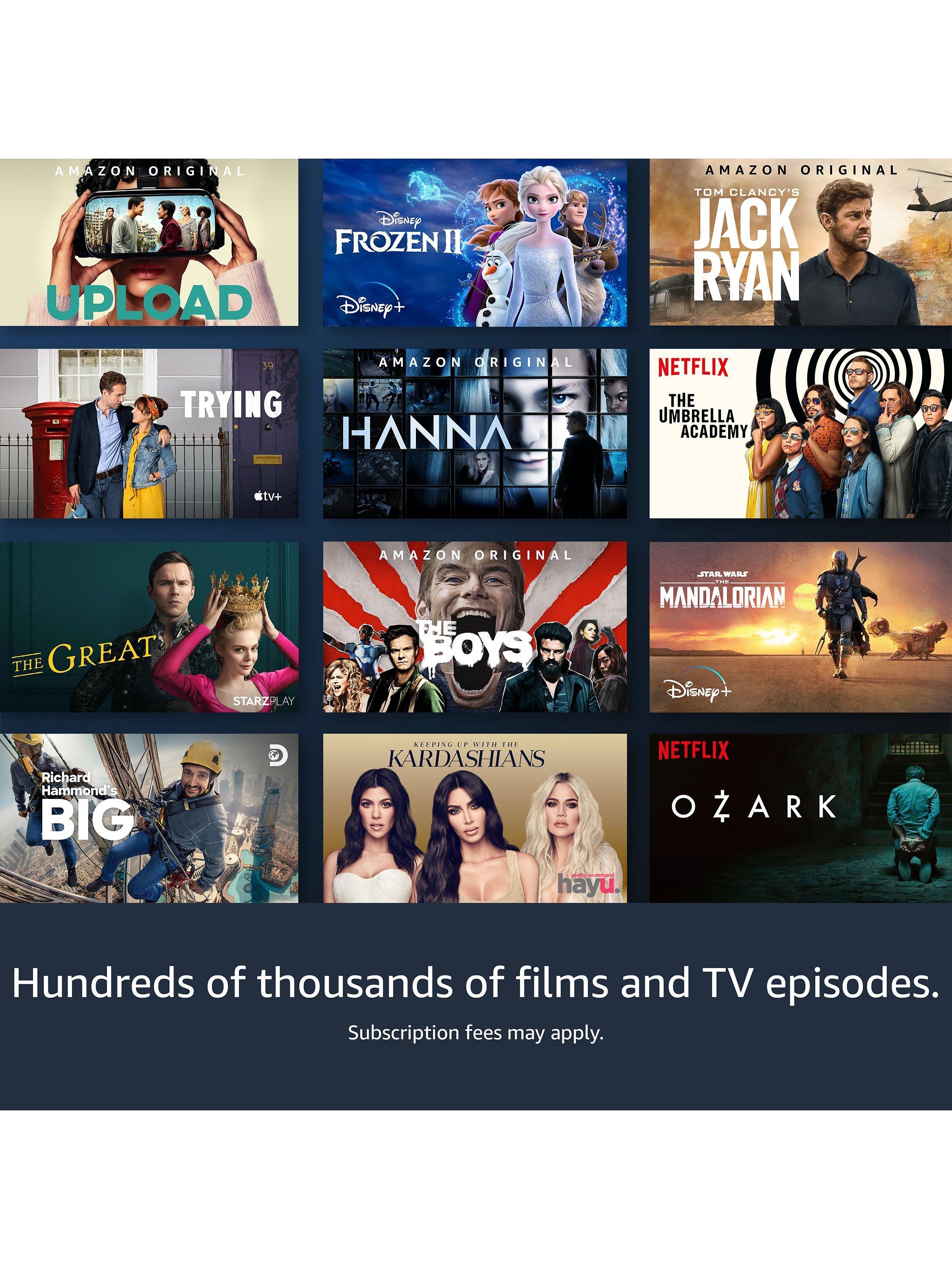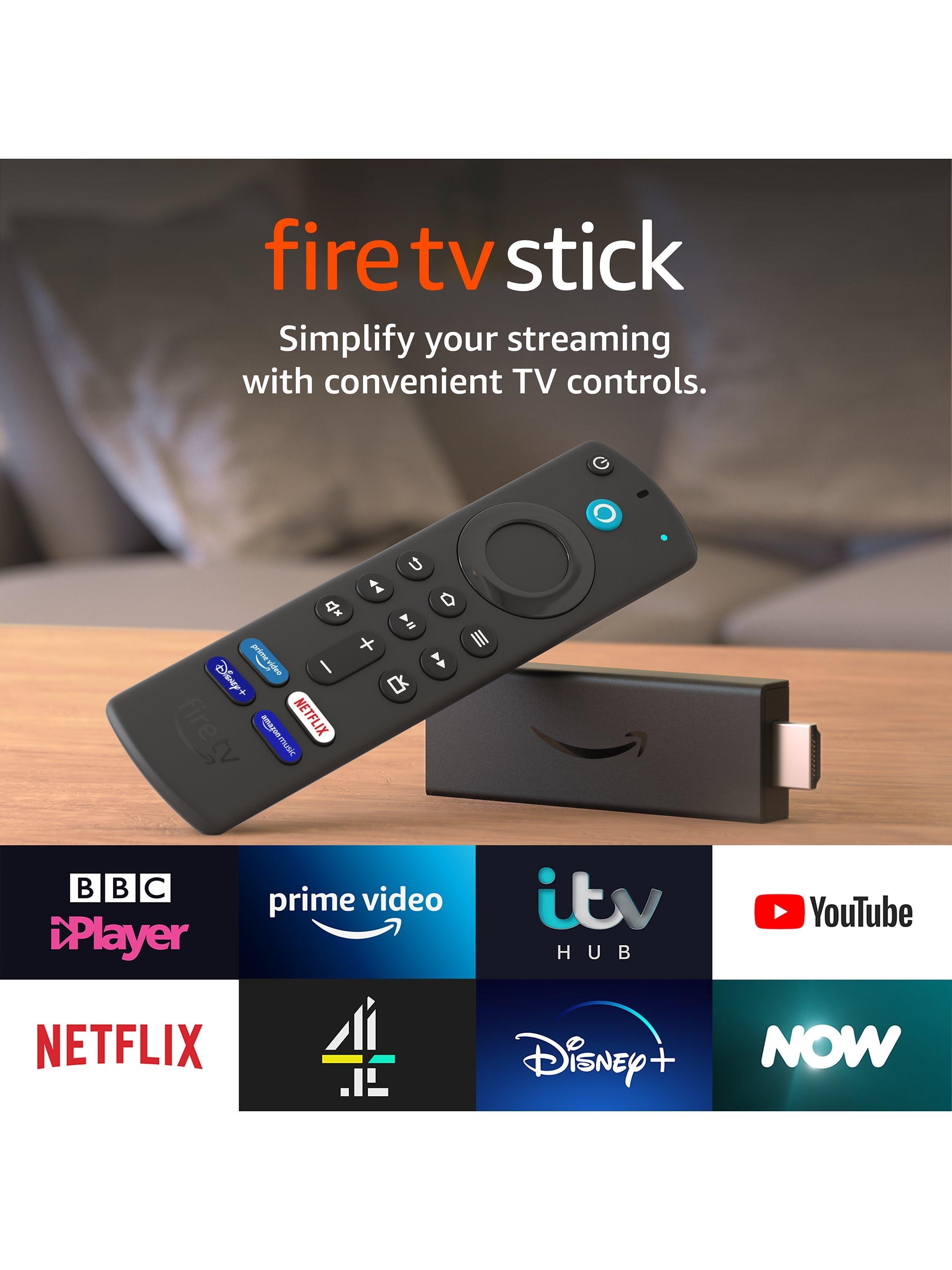 Fire TV Stick lets you enjoy favourites from Netflix, YouTube, Prime Video, Disney+, Apple TV and others. Stream live news, sport and must-see programmes. Play millions of songs through apps such as Amazon Music, and Spotify (subscription fees may apply).
