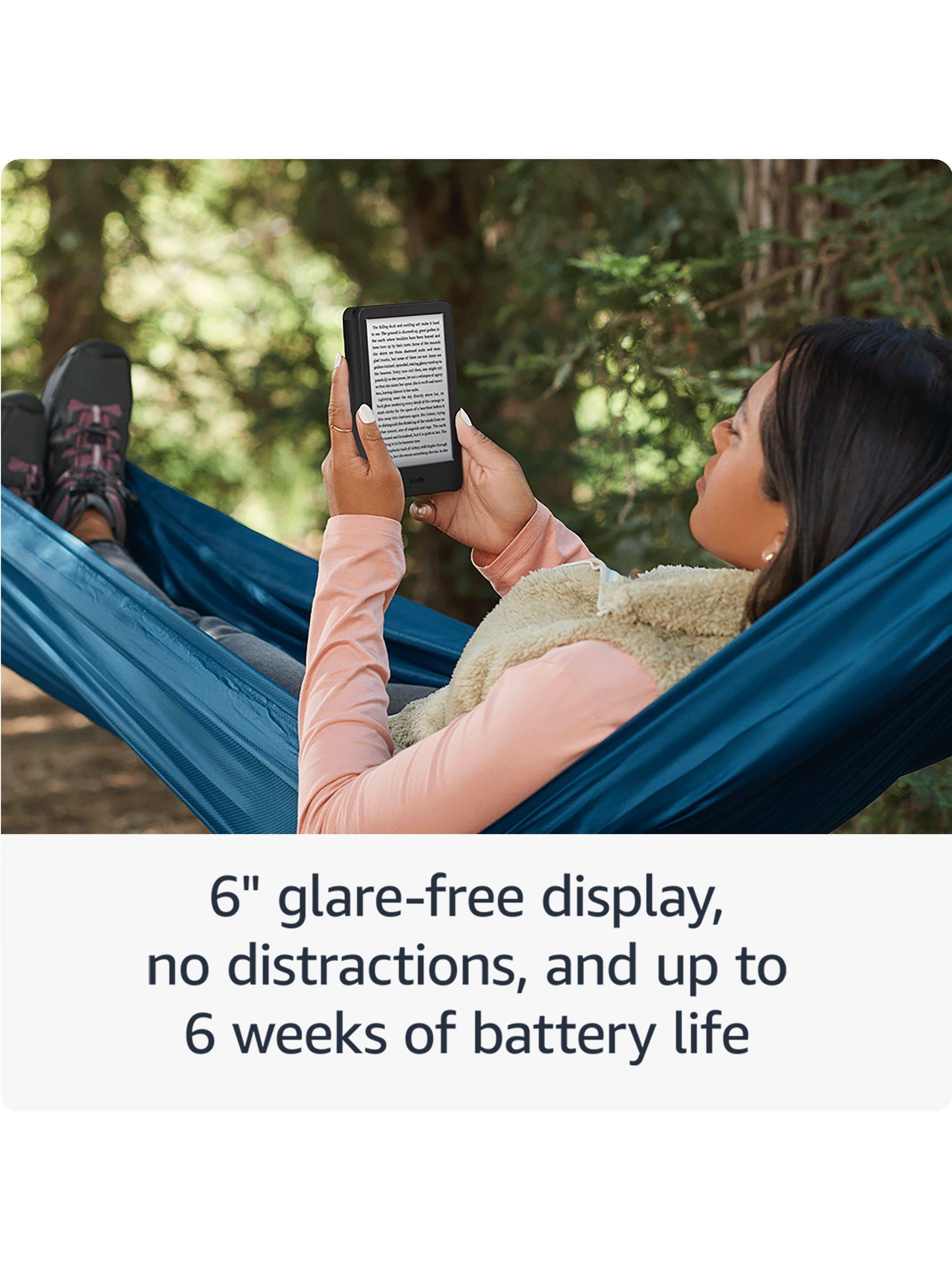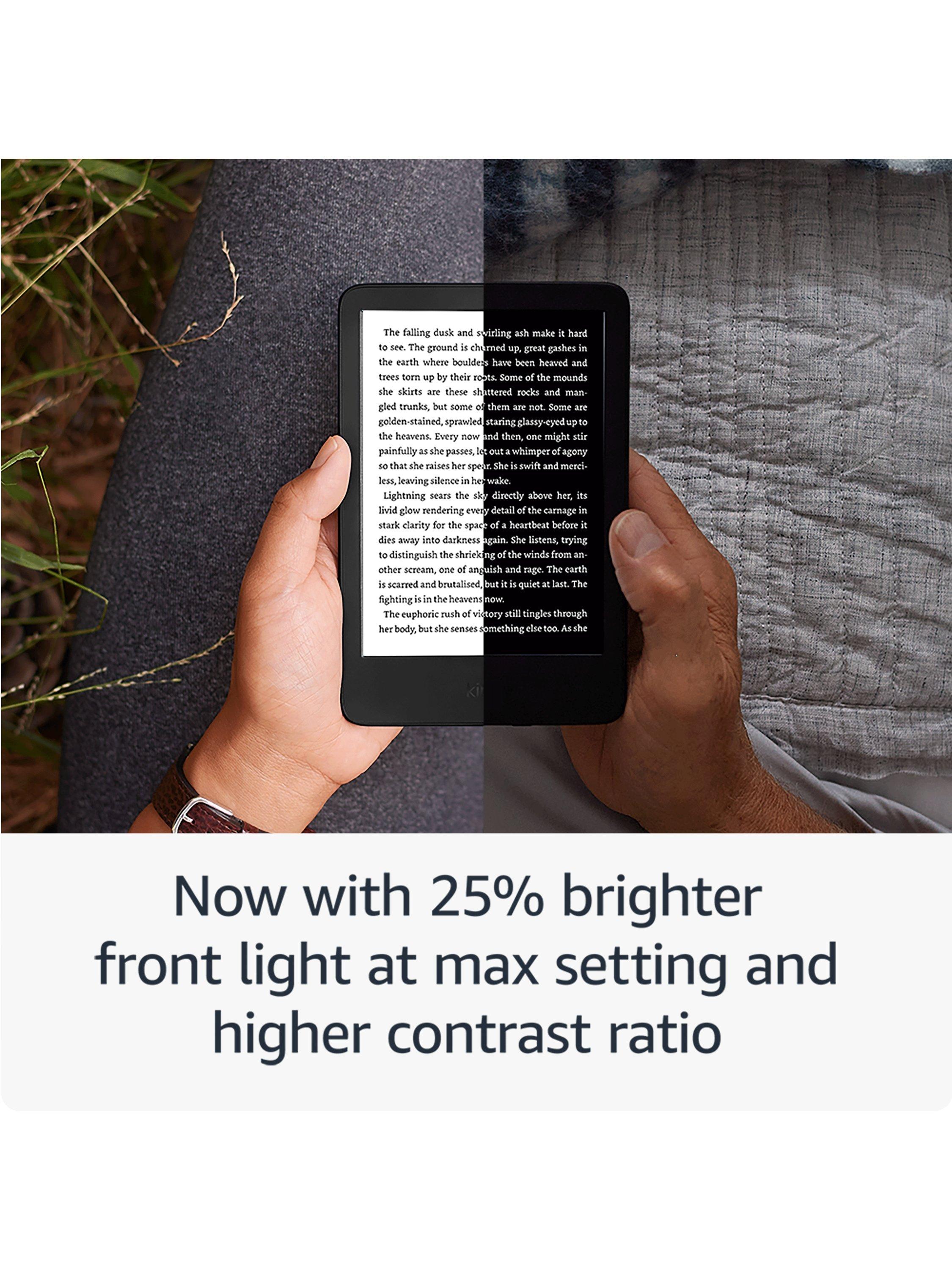 The 11th generation (2024) Kindle is the lightest and most compact Amazon have made yet. With a 6” screen, it has a glare-free display, an adjustable front light, and long battery life. Its enhanced features include a 25% brighter front light at max setting, a higher contrast ratio, and faster page turns than the previous generation. Its 300 ppi display won't tire your eyes, providing great readability, with font sizes to suit your mood, and allows you to enjoy a huge range of books in all environments.