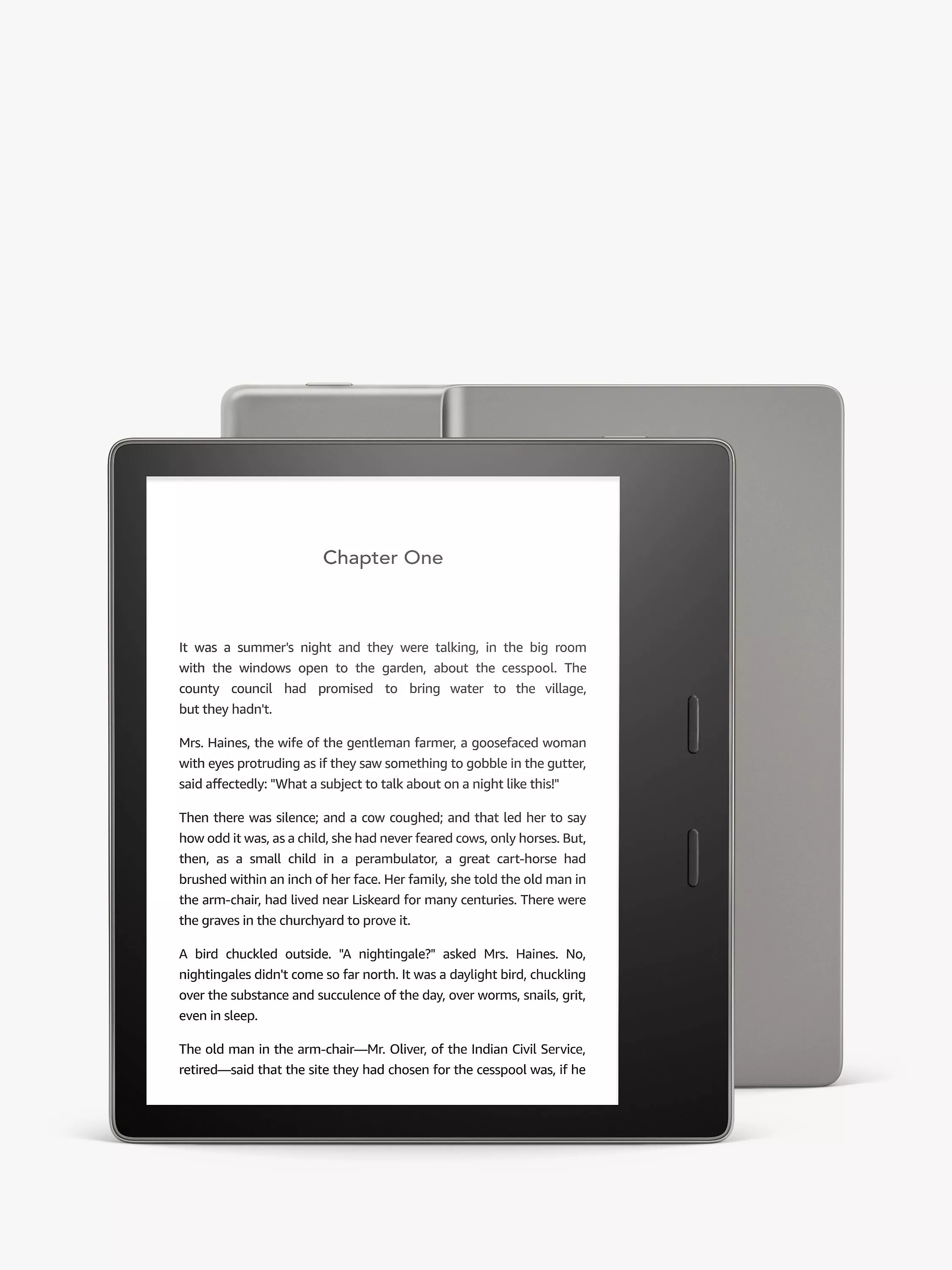 There are 25 LED lights, along with an adaptive light sensor on the Oasis that’ll automatically adjust to suit your surroundings – providing an optimum reading experience wherever you are. This way you can comfortably read in a dimly-lit room as well as outside in bright sunlight. You can also tweak the light from white to amber to create a more classic novel reading experience.