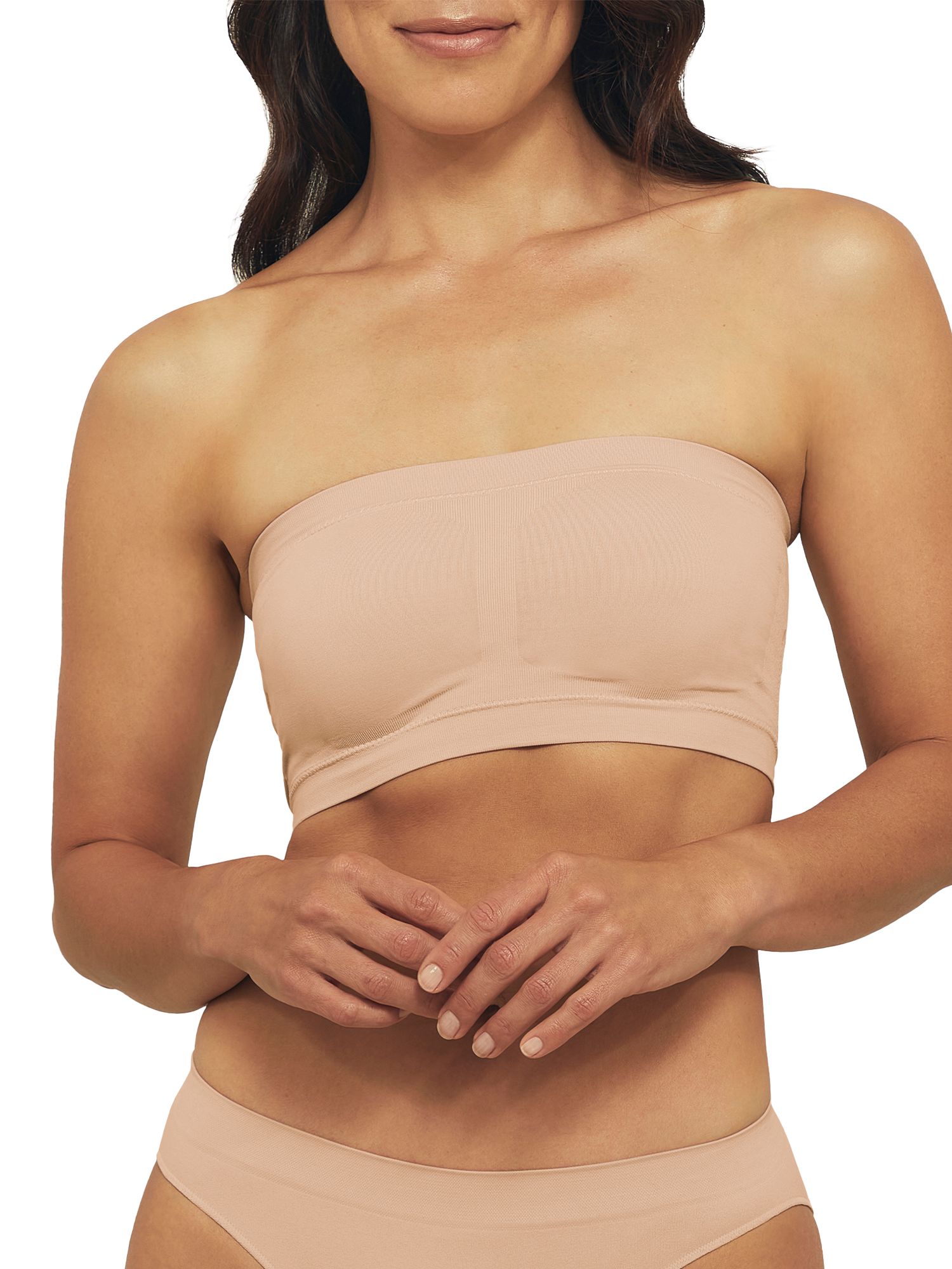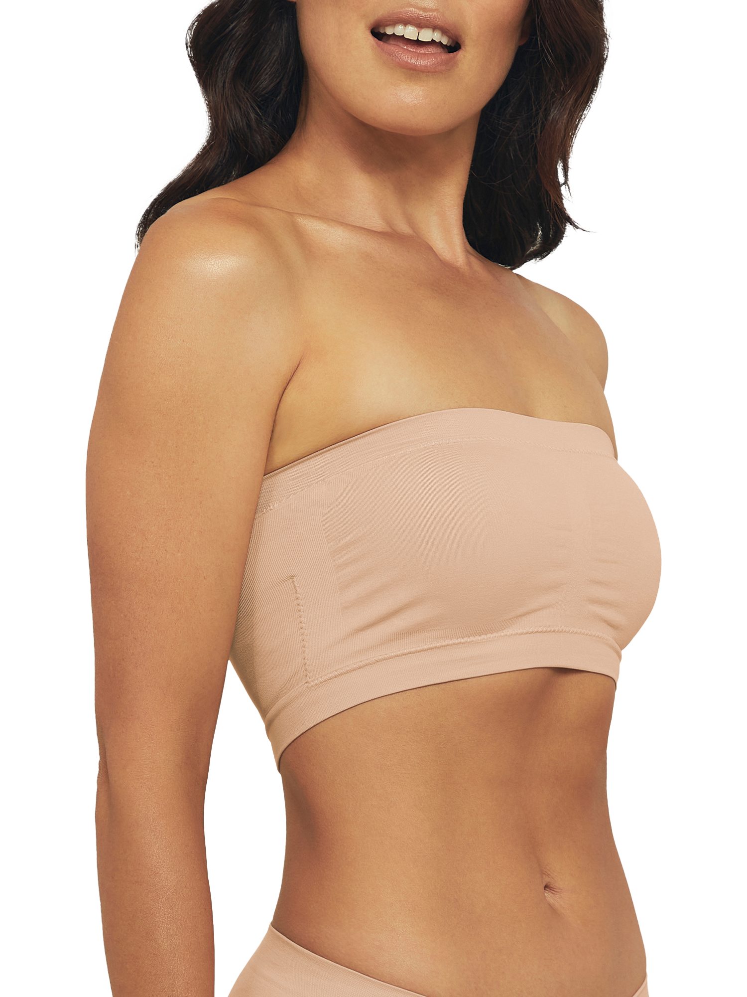 Bare Essentials by Ambra is an everyday go-to option. This bandeau is soft and sleek with a supportive underband and removable cups. Designed to be seam-free for all-day comfort.