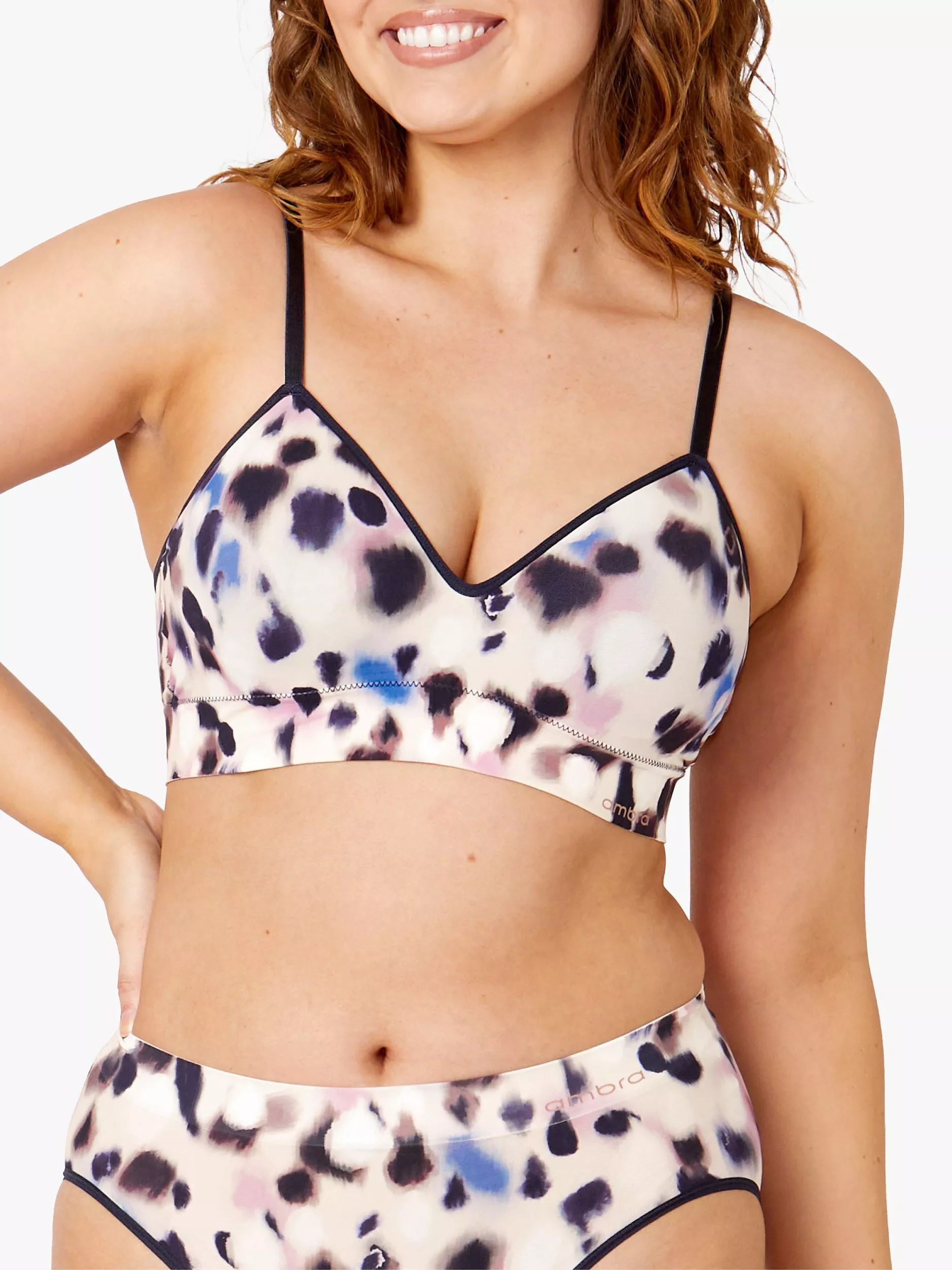 This non-wired and seam-free padded bra is created with premium yarns that stretch and move with you. The moulded cups are suitable for up to C-D cup size and have adjustable straps.