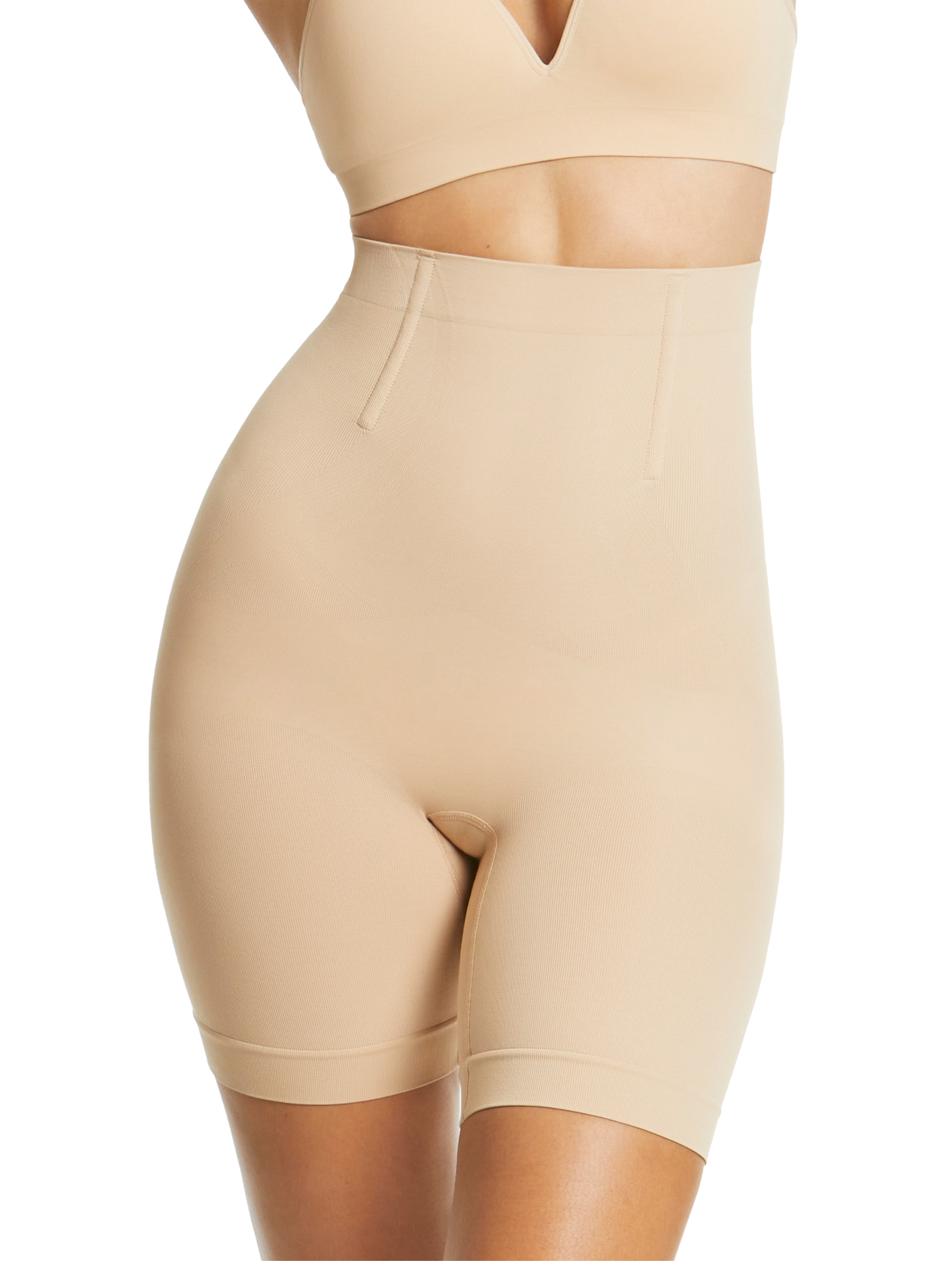 The It's a Cinch Mid Thigh Shorts feature a special moisture-wicking knit microfibre, to keep you warm in the winter and cool during the summer. The super high waist and light boning help to cinch the waist, while the thigh length style sculpts the legs and prevents chafing.