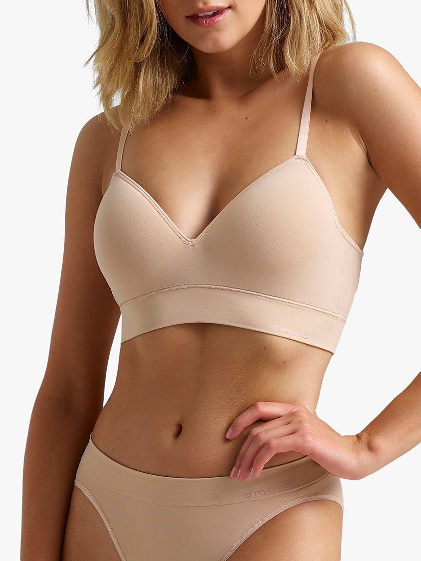 Moulded cups - suitable for up to C-D cup size. Non-wired & seamfree for all-day comfort. Adjustable straps with rose gold hardware. Smooth under band. Matching briefs available.