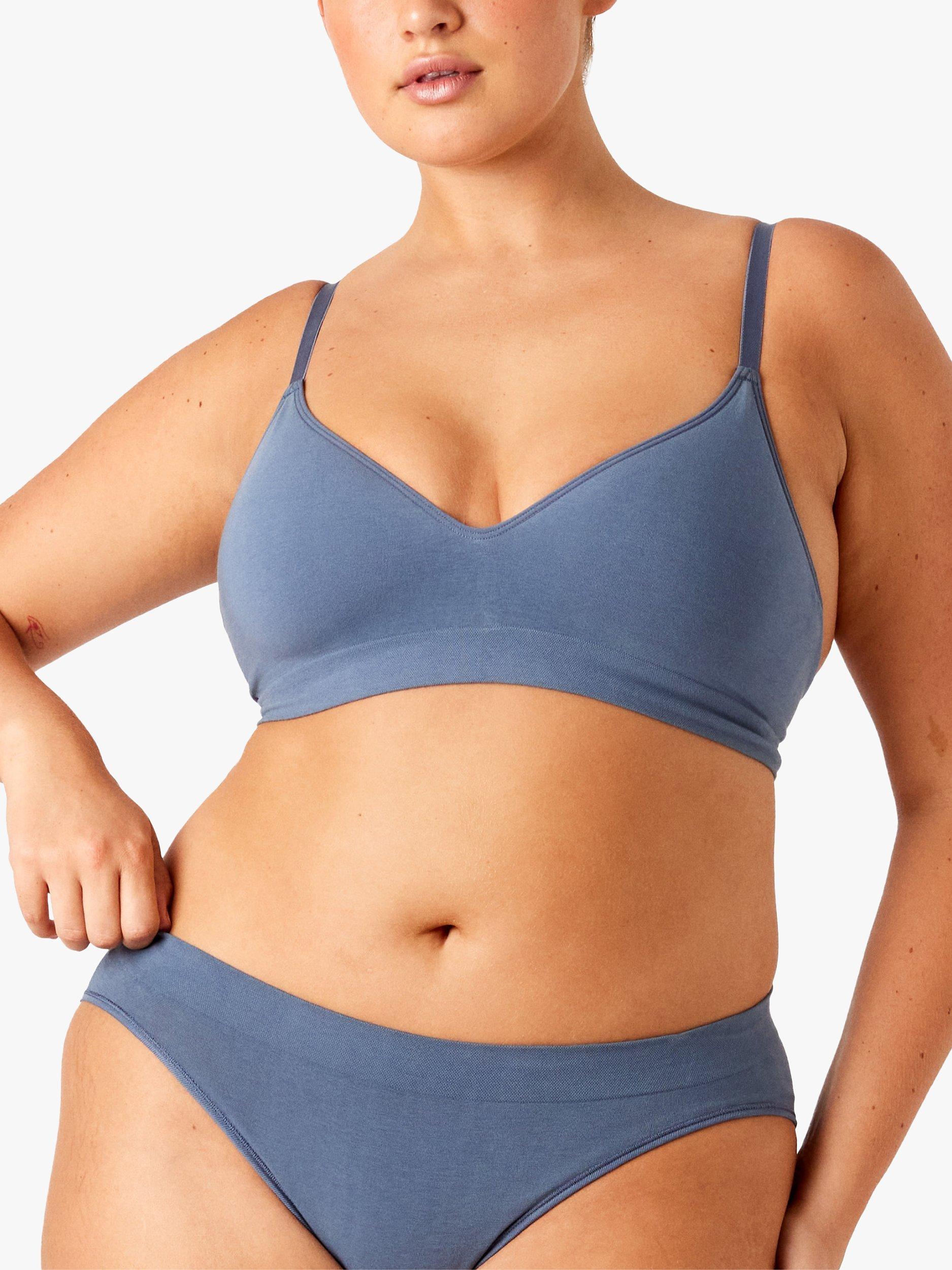 Moulded cups with soft brushed inner fabric - suitable for up to C-D cup size. Adjustable straps. Hook & eye closure. Smooth underband. Non-wired & seamfree for all-day comfort. Matching briefs available.