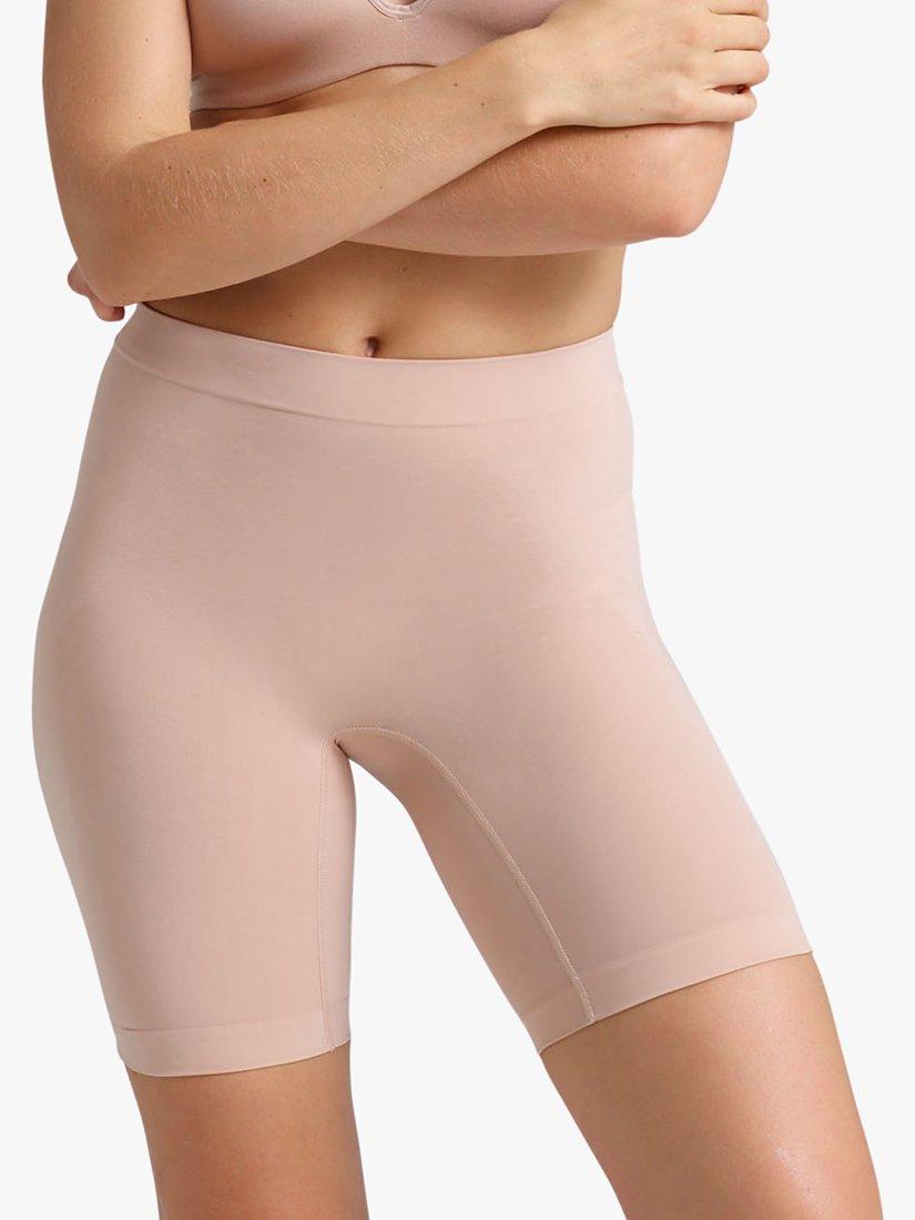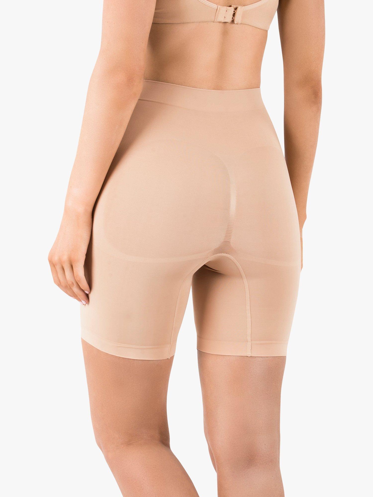 The Thigh Shaper Short provides light and powerful support that flattens the tummy and firms thighs. Seamfree and smooth. Light and comfortable. Medium compression. Cotton blend gusset.