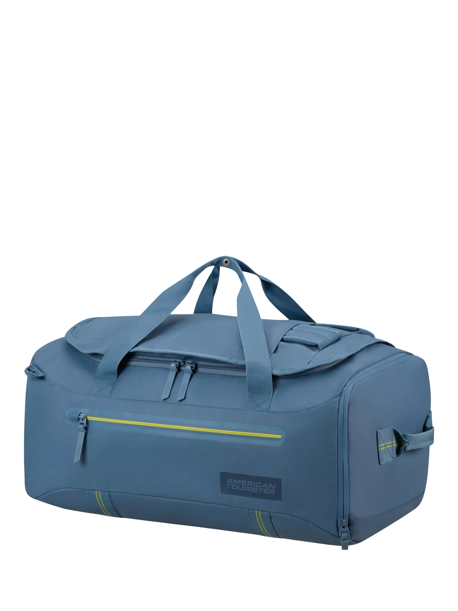 Inner out outer fabrics made from American Tourister's Recyclex material technology. Features include: water repellent coated fabric, hidden backpack straps and a handy storage bag for easy tidying away at home.
