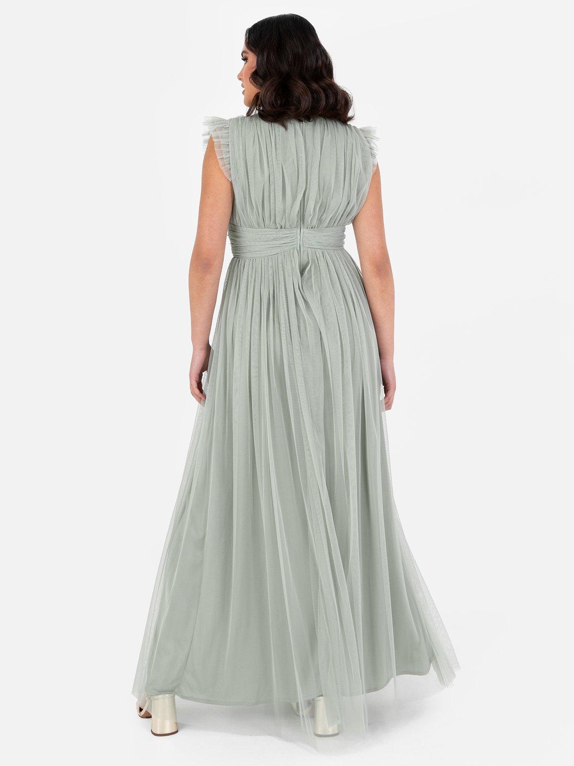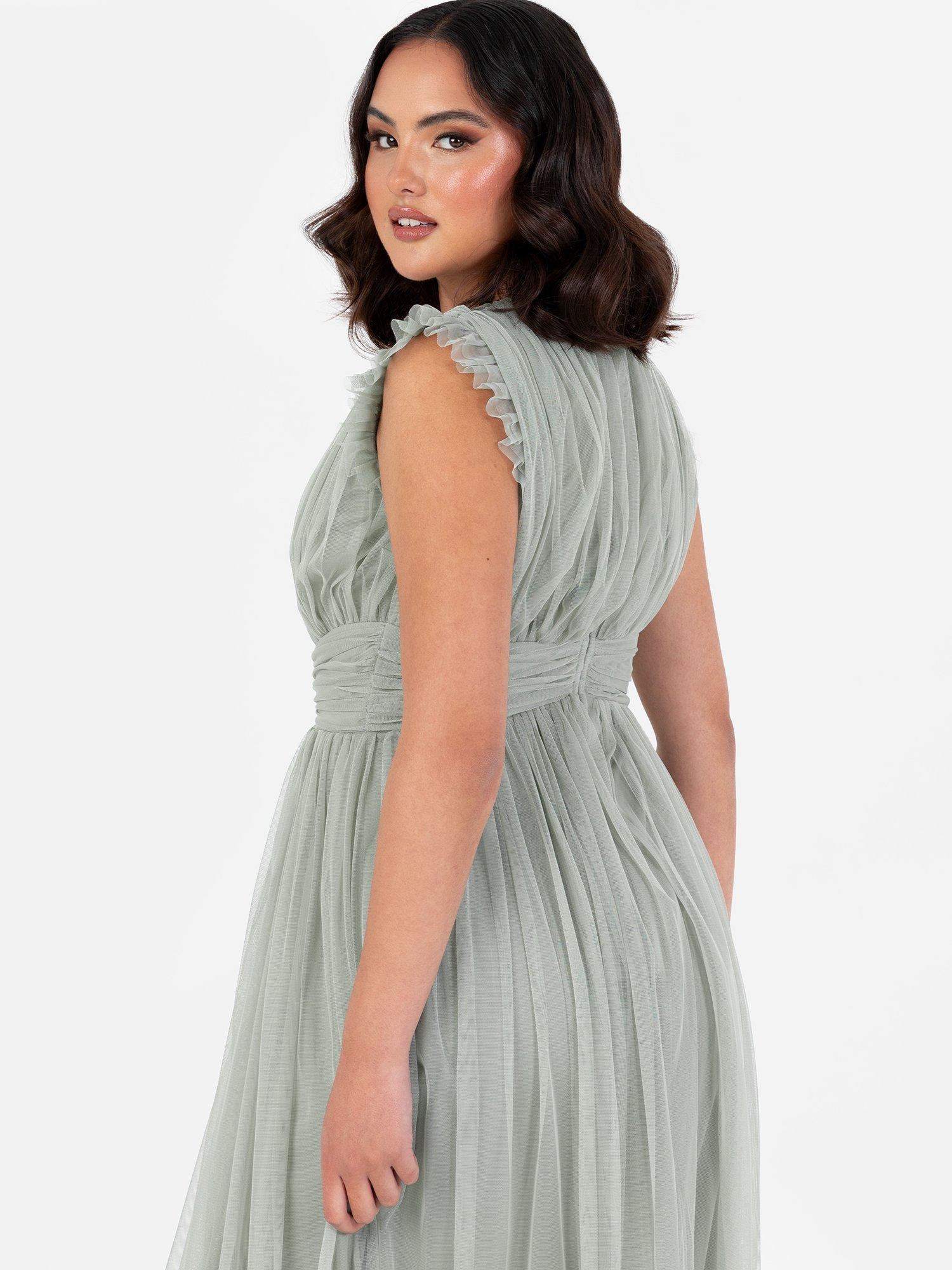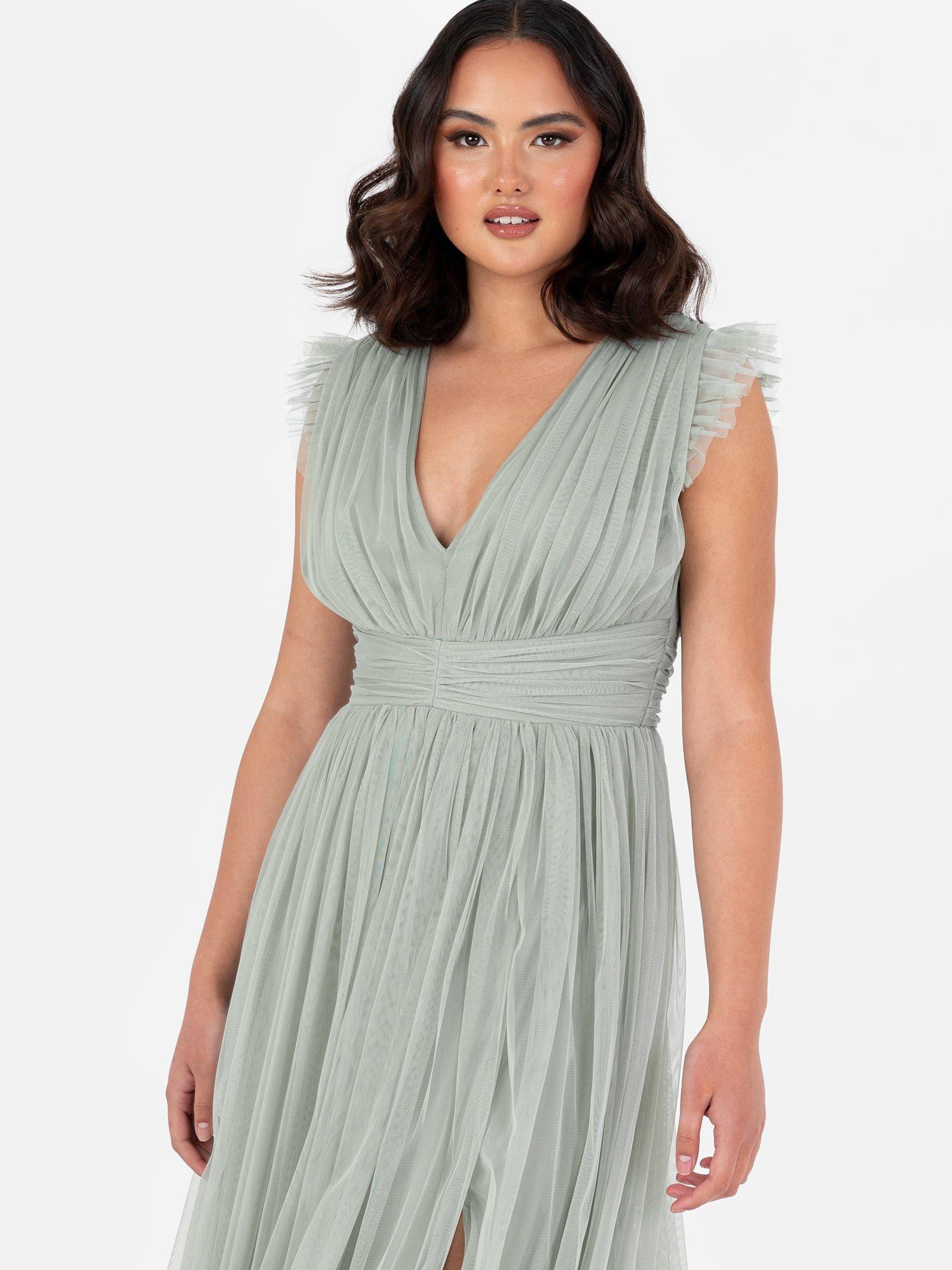 Anaya's signature look holds its meticulously gathered form over this maxi's entirety, creating a dreamy aura with a striking horizontally gathered waist panel that emphasises the dress's natural A-line silhouette. Flutter detail sits atop the shoulders and the deep V neckline both enhancing the feminine charm this dress exudes. And for that touch of allure you'll find a thigh-high split to the maxi skirt that demands a powerful strut onto the dancefloor.