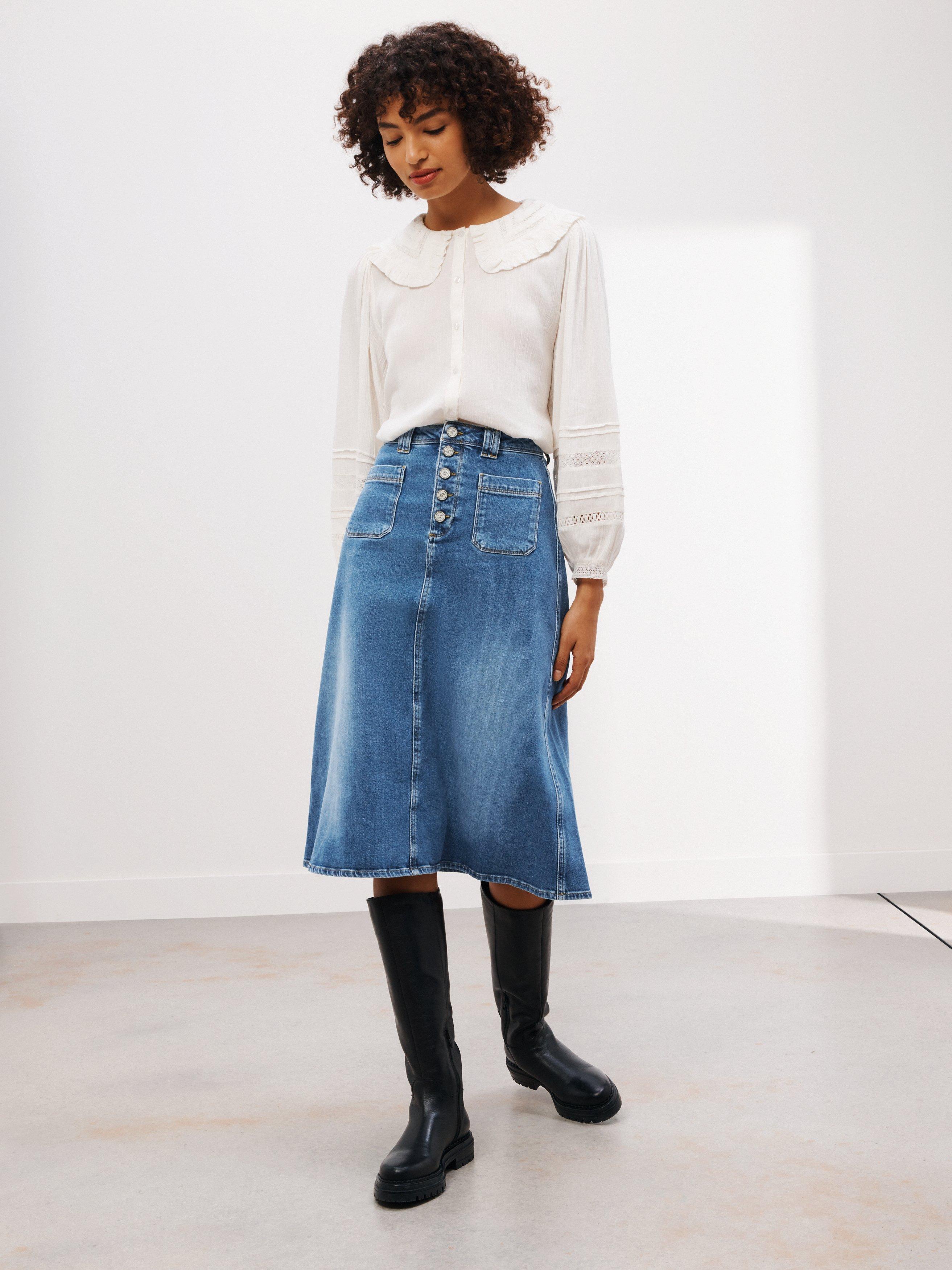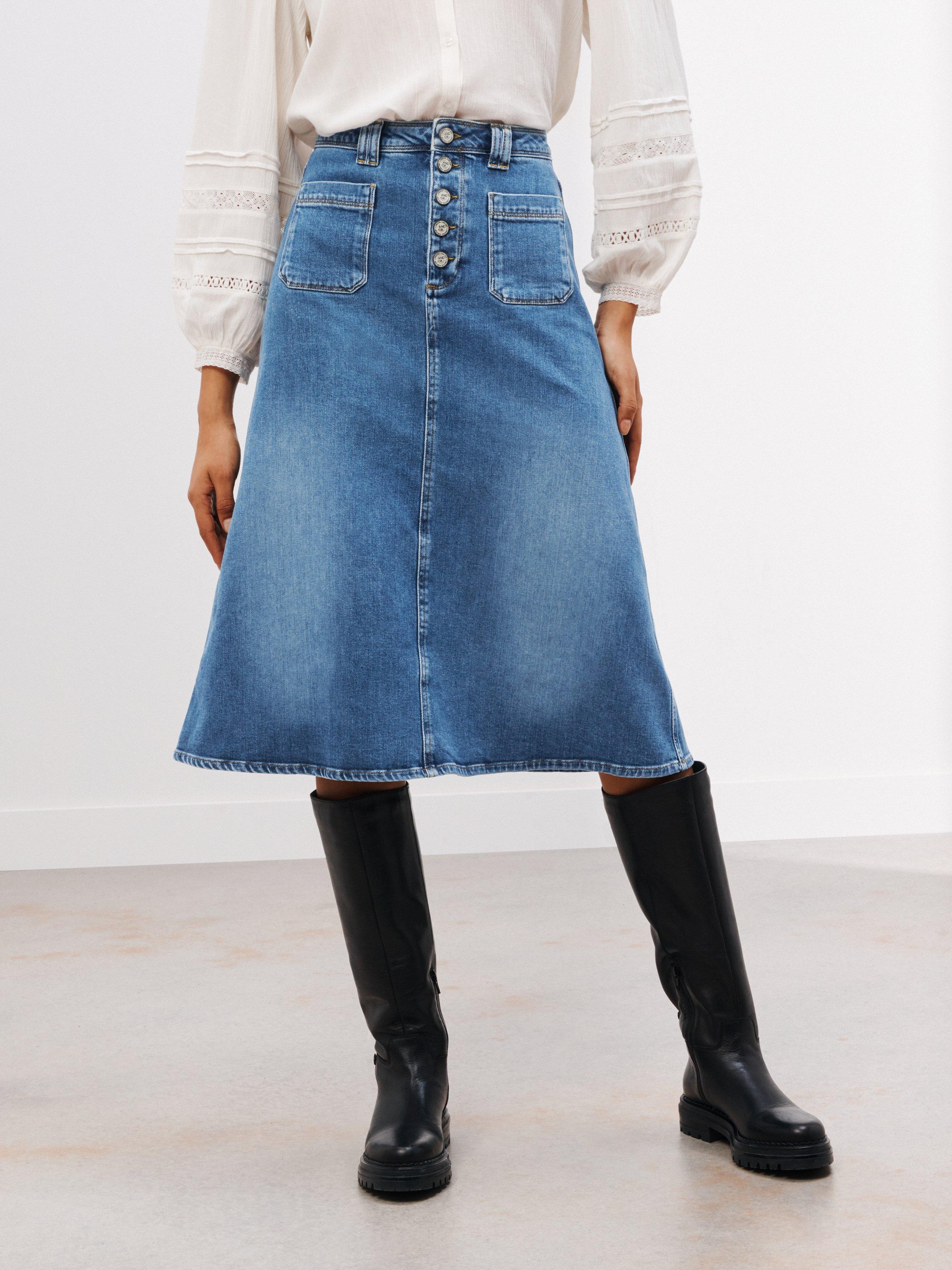 AND/ORA-Line Denim Skirt, Blue, 16