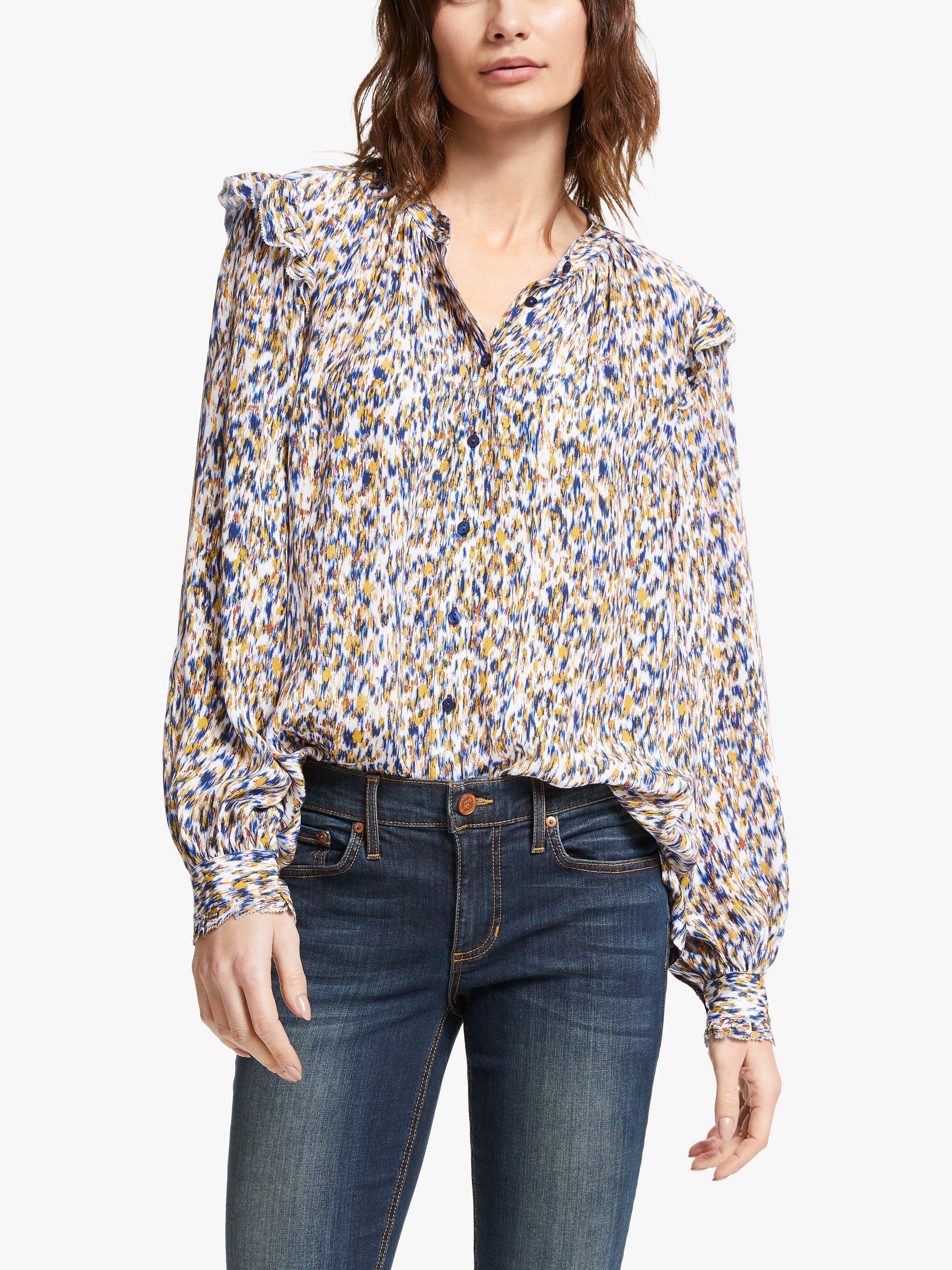 Subtle frills at the shoulders and blouson sleeves give this AND/OR shirt a playful vibe that works perfectly with the watercolour animal print and collarless design, meshing modern and classic details to create a timeless piece that works dressed up or down. Tuck into denim or leave it loose for a breezy fit.