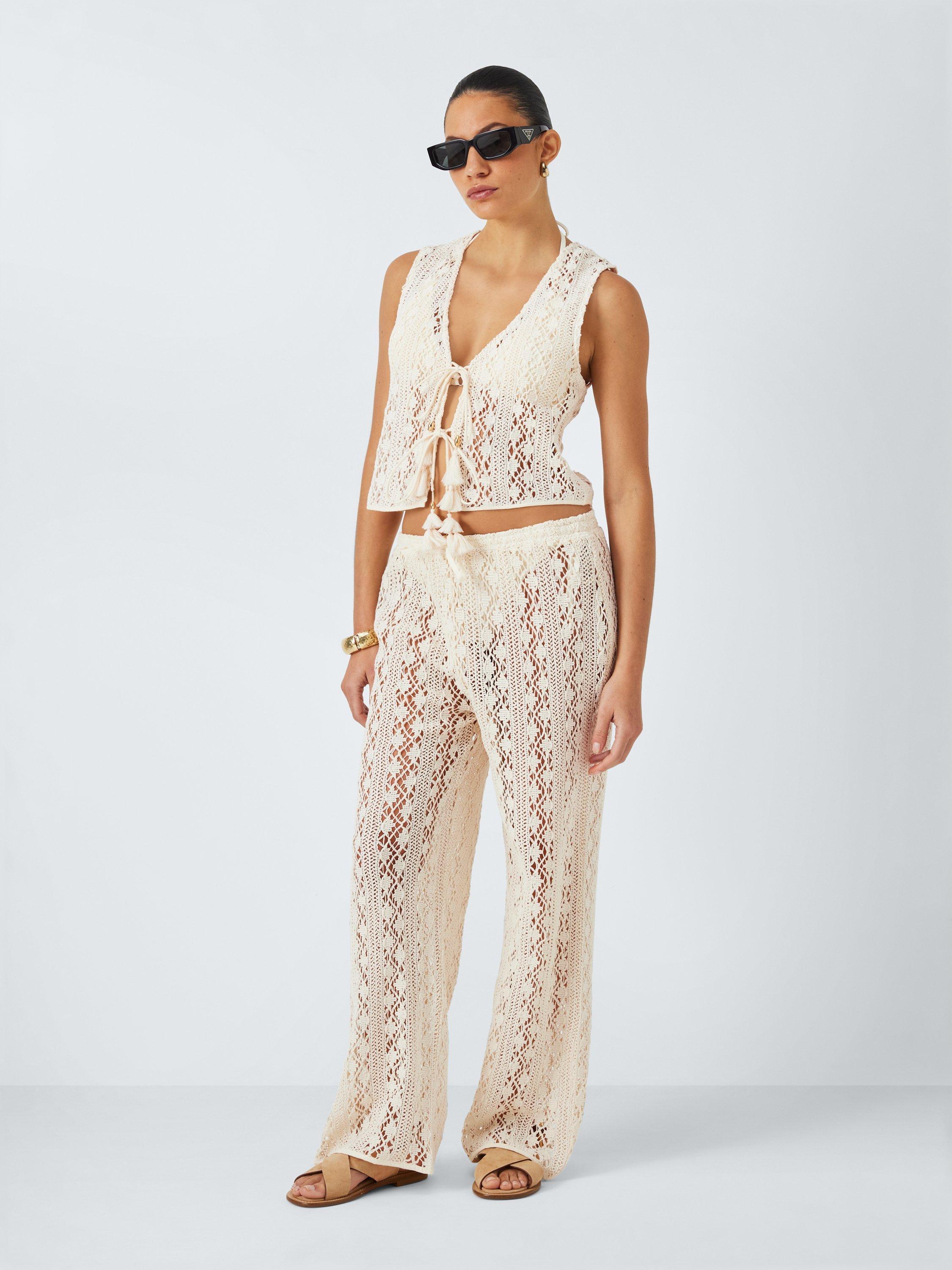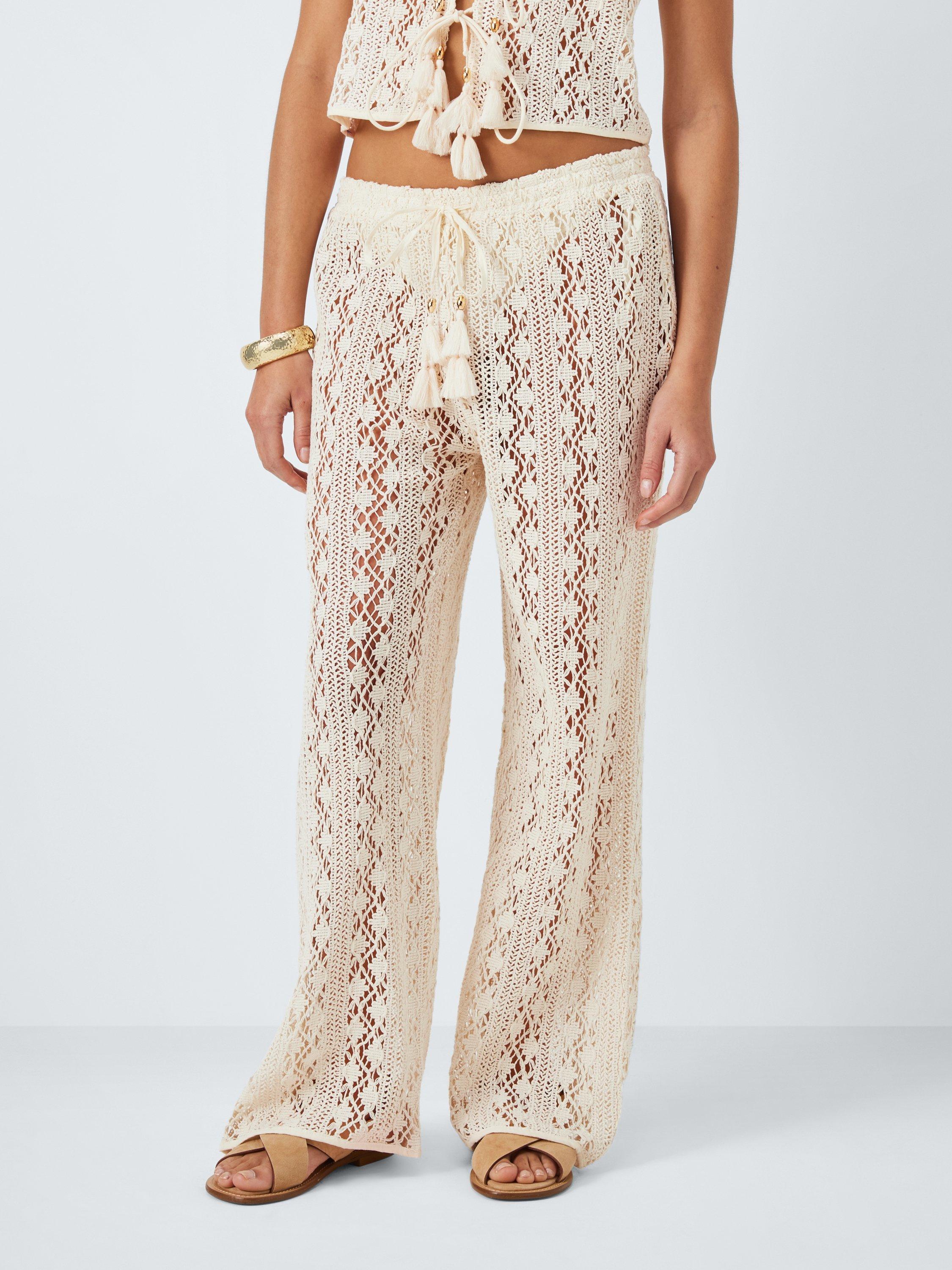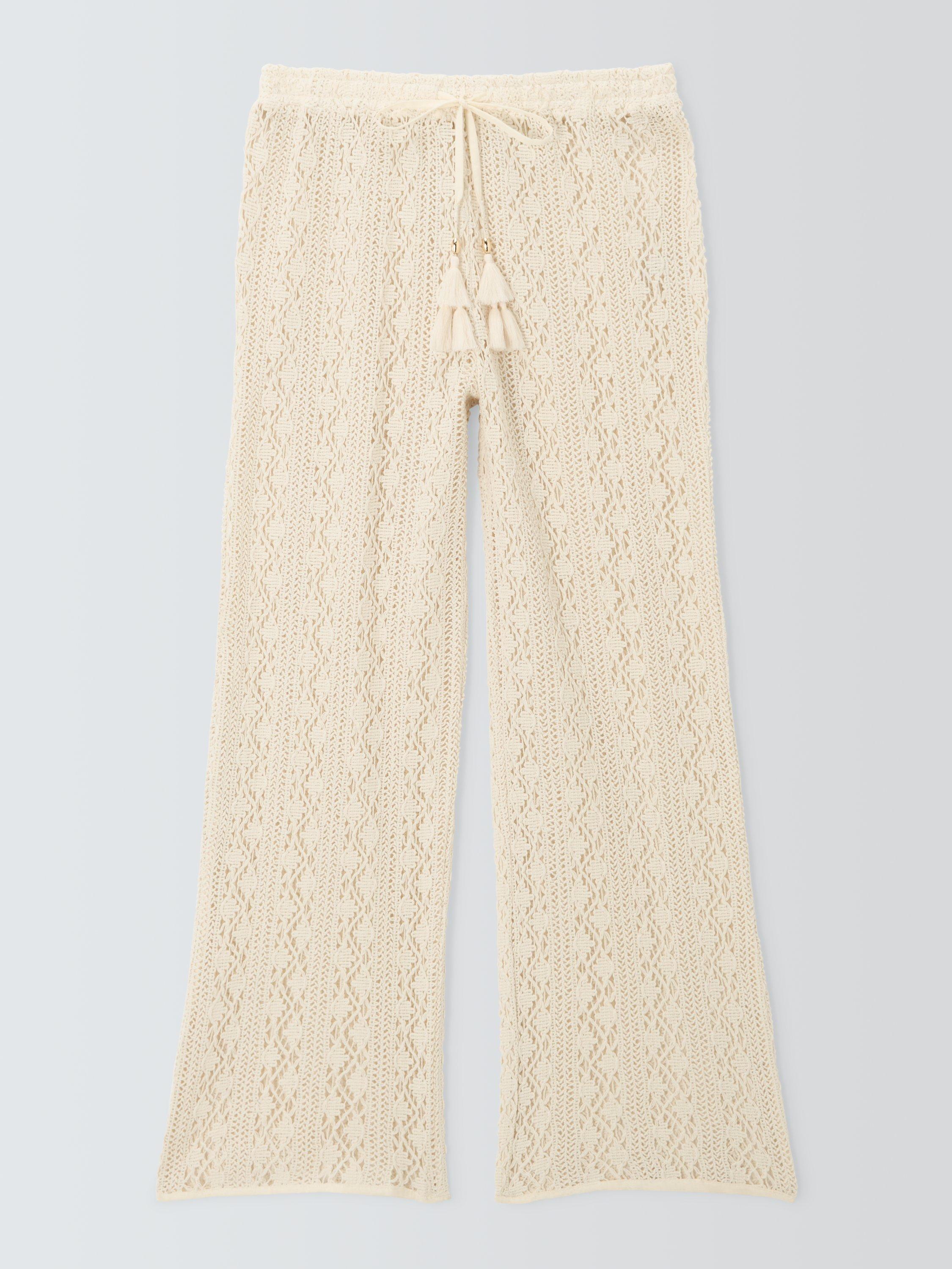 Cotton crochet trousers with an elasticated drawstring waistband.