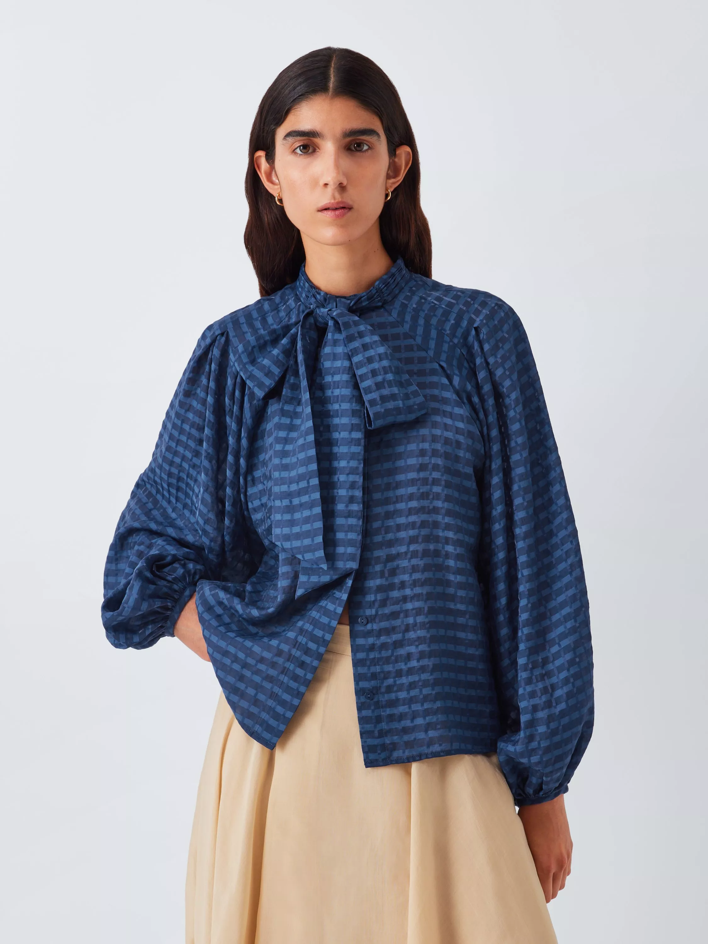 - Pussybow tie neck detail
