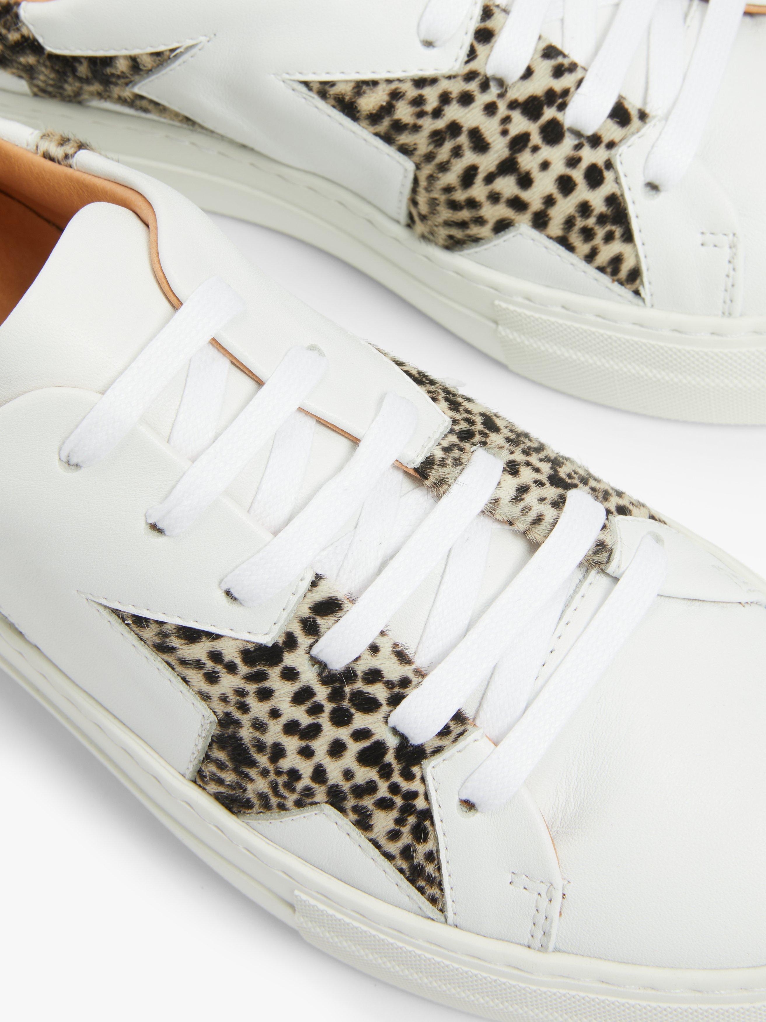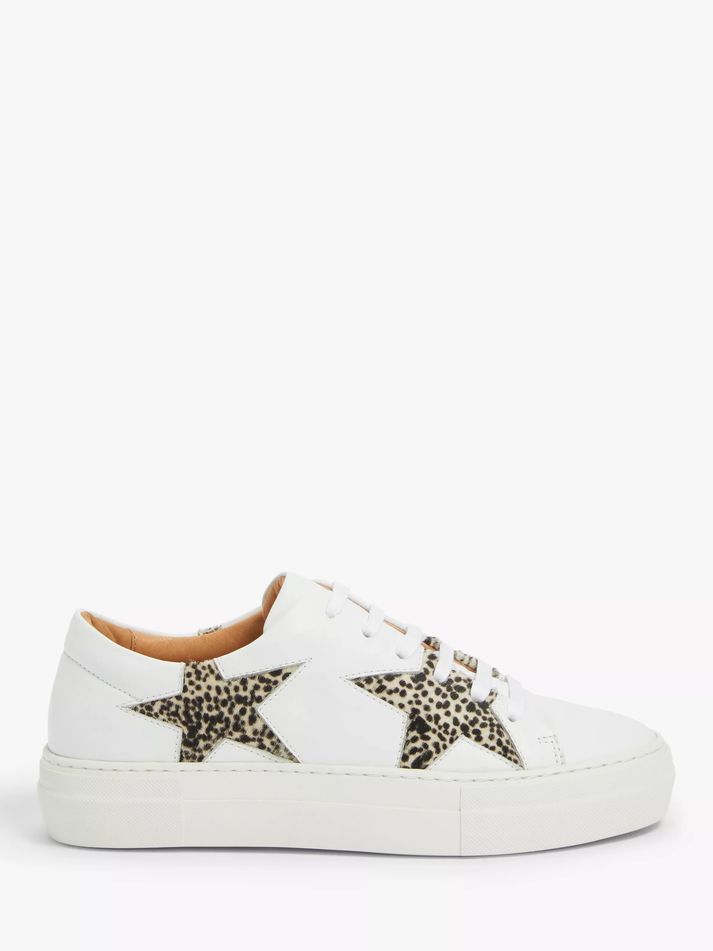 A statement style, contrast stars in a leopard print adorn the upper in a tactile finish. With lace-up fastenings and a rubber sporty sole, this pair is lined in leather for added comfort.