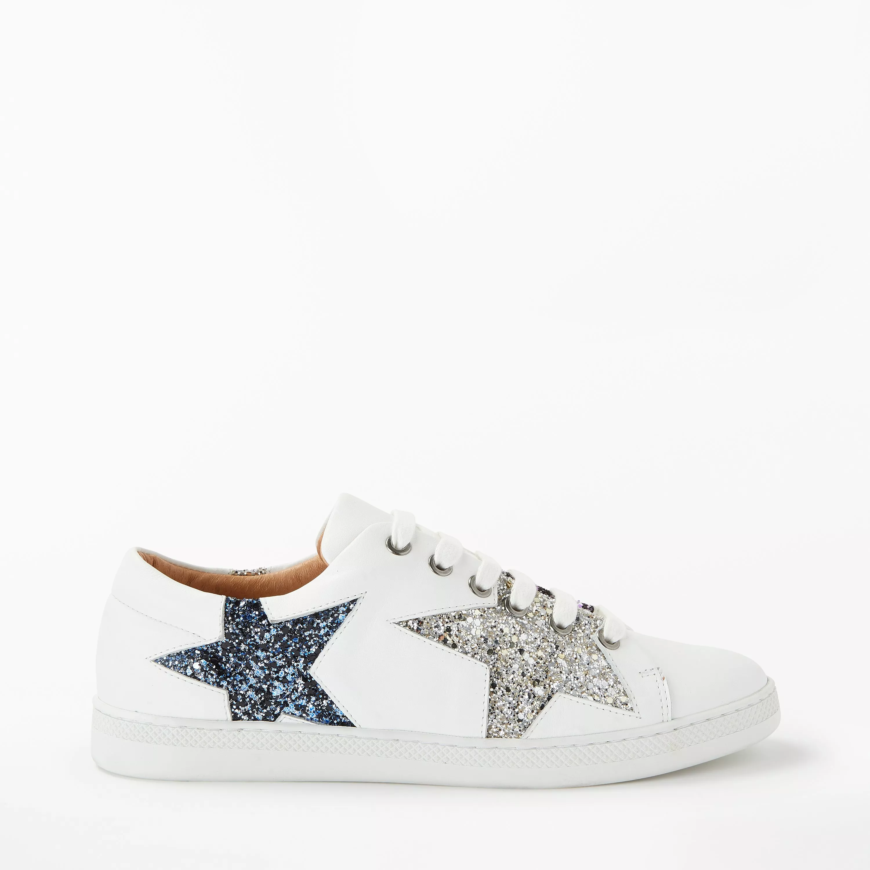 A statement style, contrast stars adorn the upper in a tactile finish. With lace-up fastenings and a rubber sporty sole, this pair is lined in leather for added comfort.