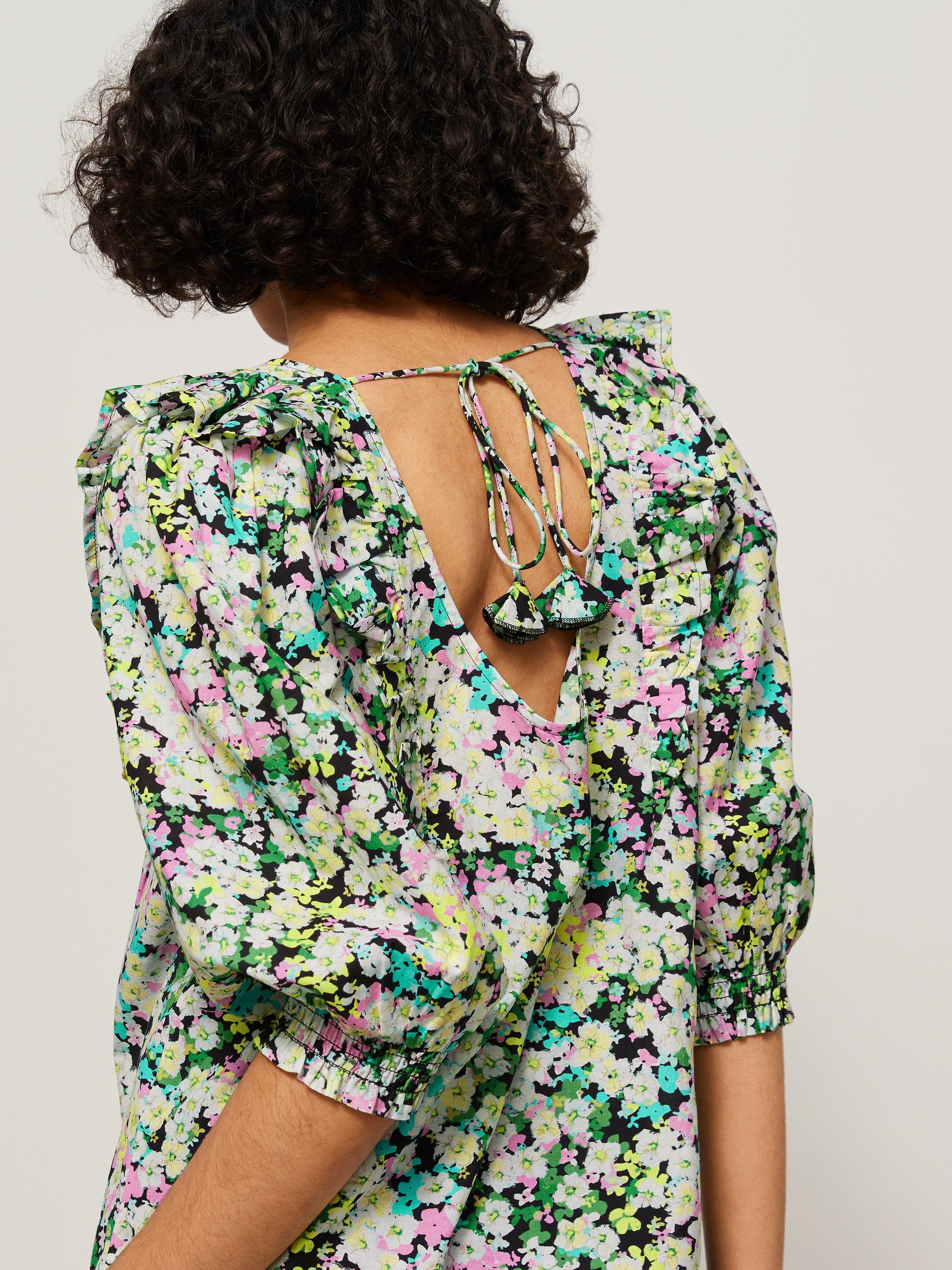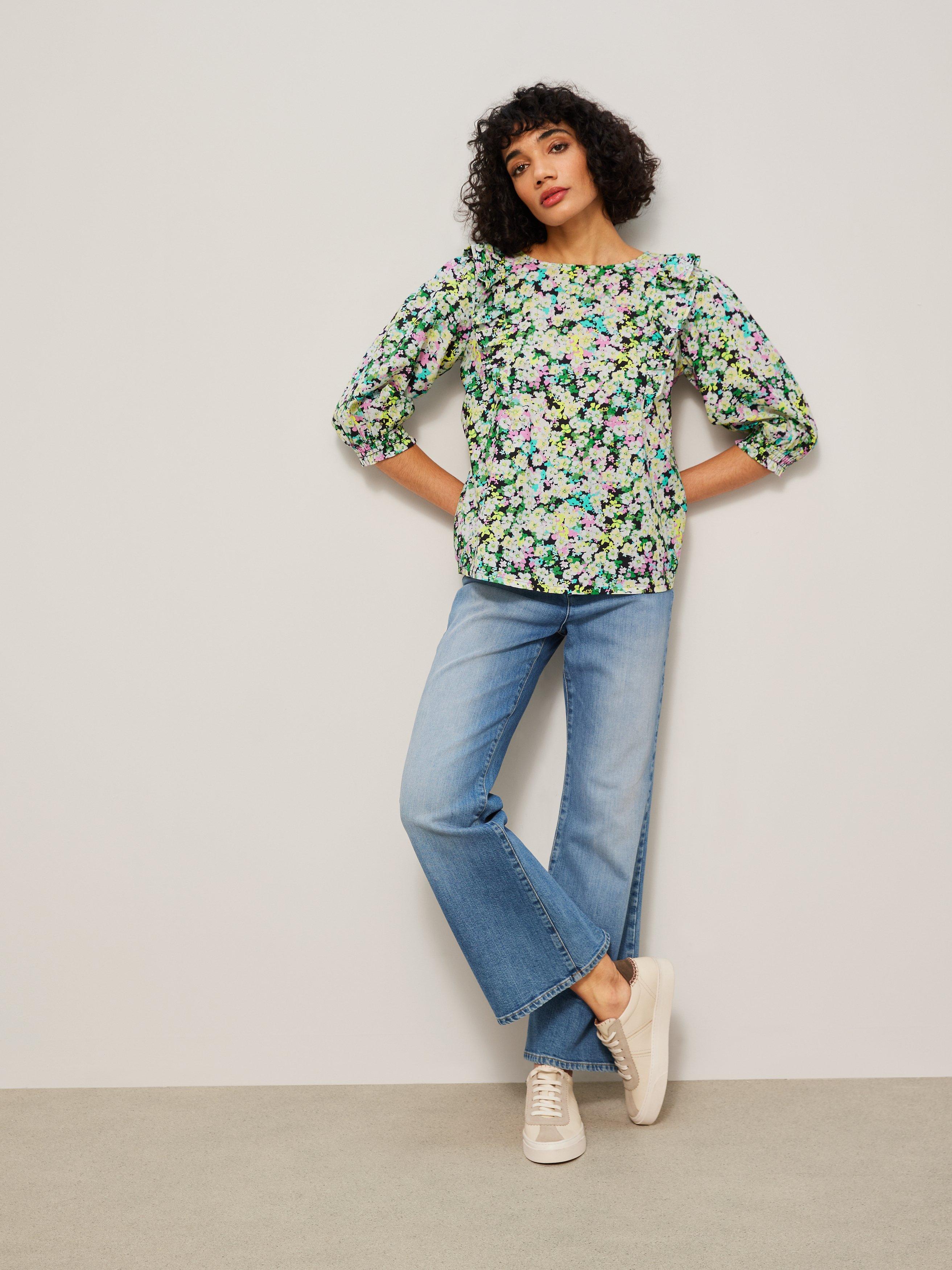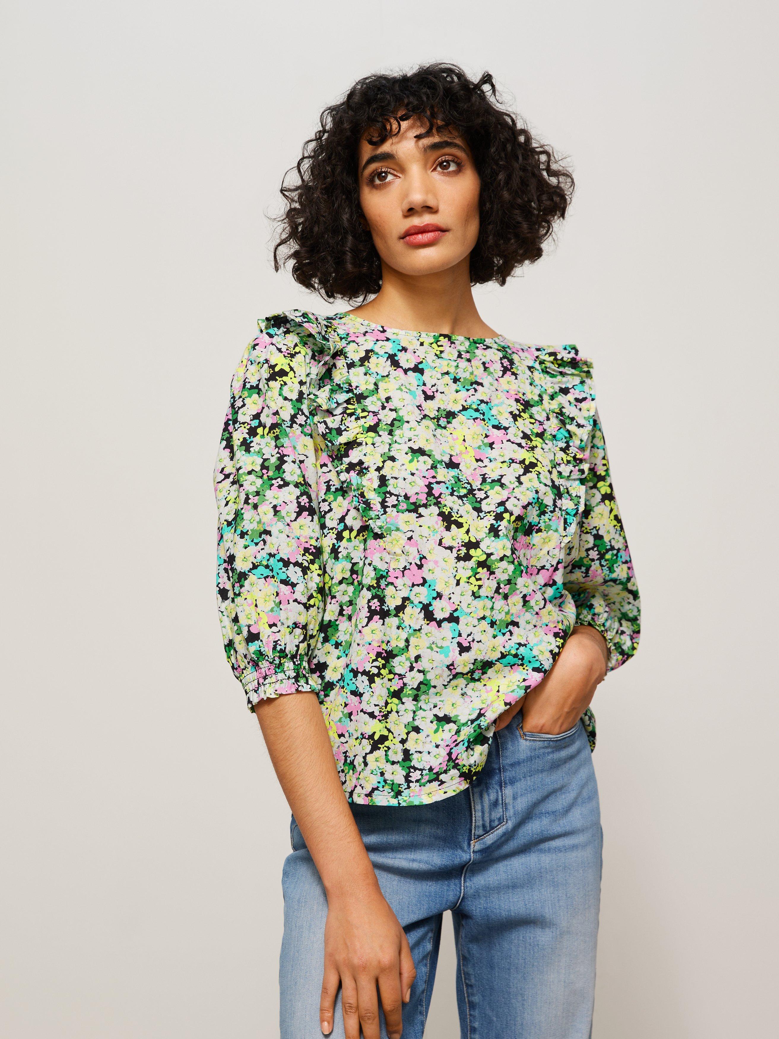 With a timeless, can't go wrong floral running throughout, this lightweight blouse features an unusual, reverse v-neckline at the back with adjustable tie for versatile styling. With on-trend ruffle detailing on the front, it's a top you can style with denim and your favourite tailored pieces alike.