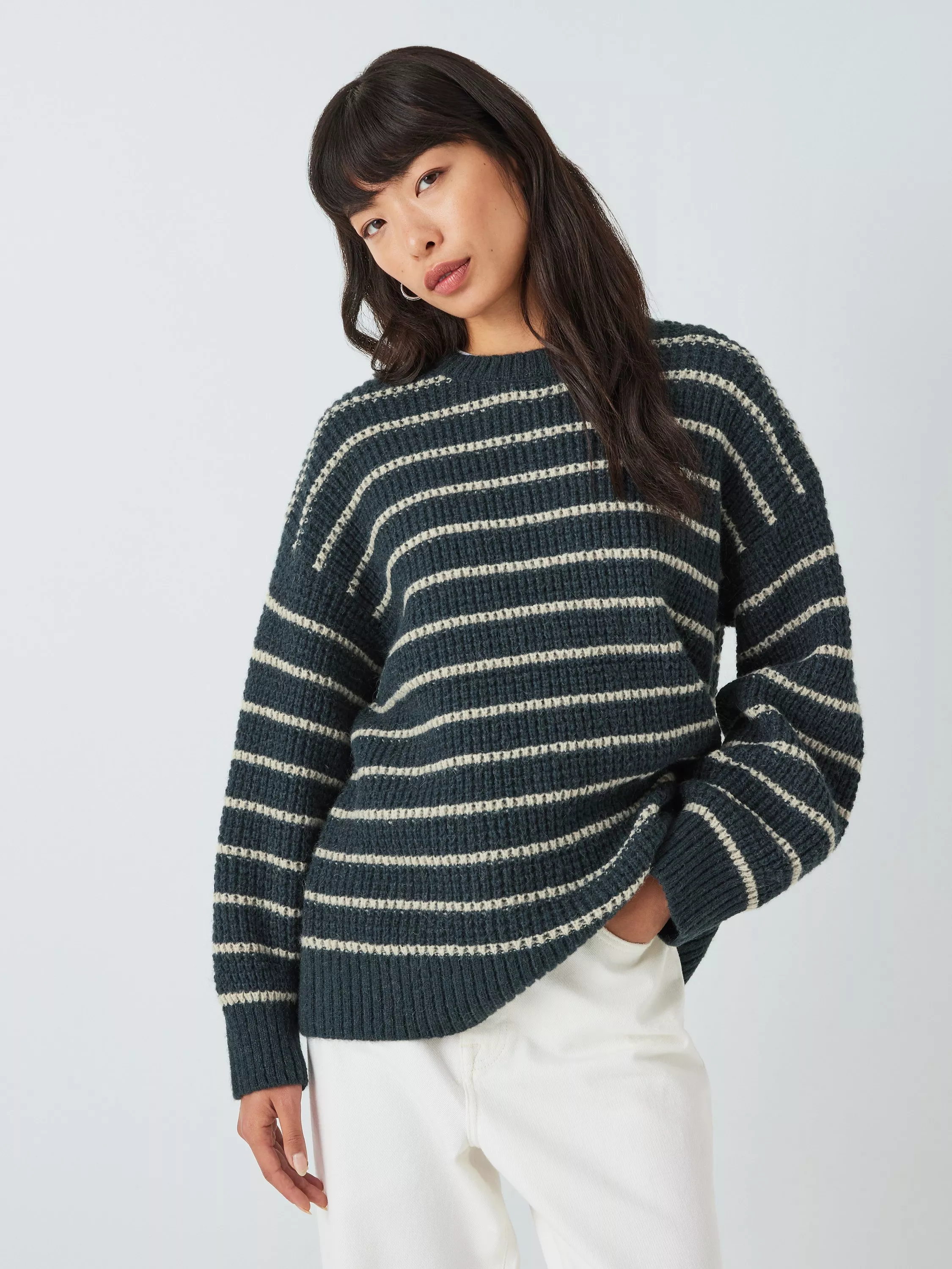 Nothing says capsule wardrobe like a cosy, striped knit. Offered in an on-trend (and super comfy) oversized fit, this jumper is accented with ribbed detailing at the edges to effortlessly add structure taking it from slouchy to sartorial.