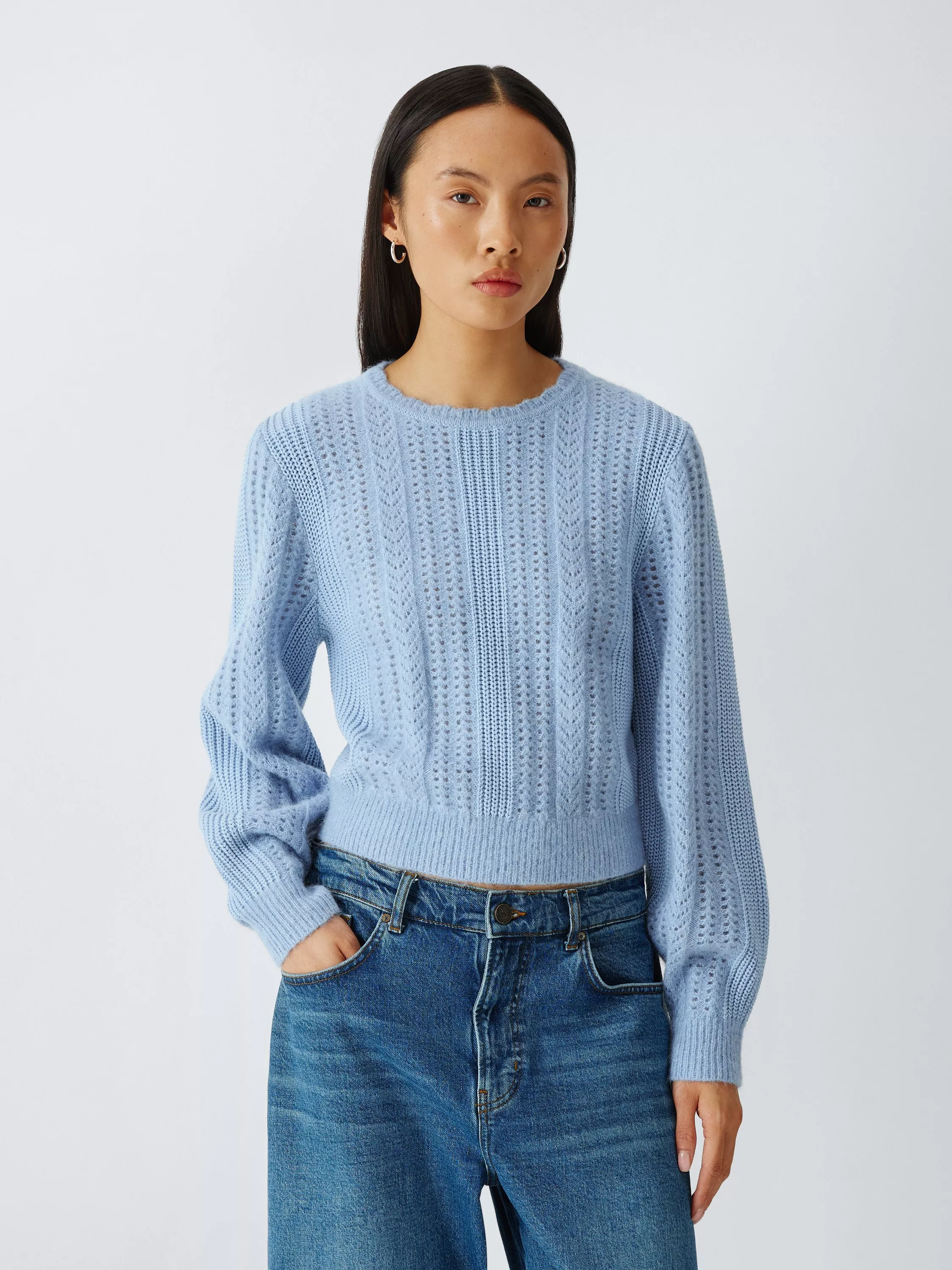 - A pointelle knit long sleeve jumper