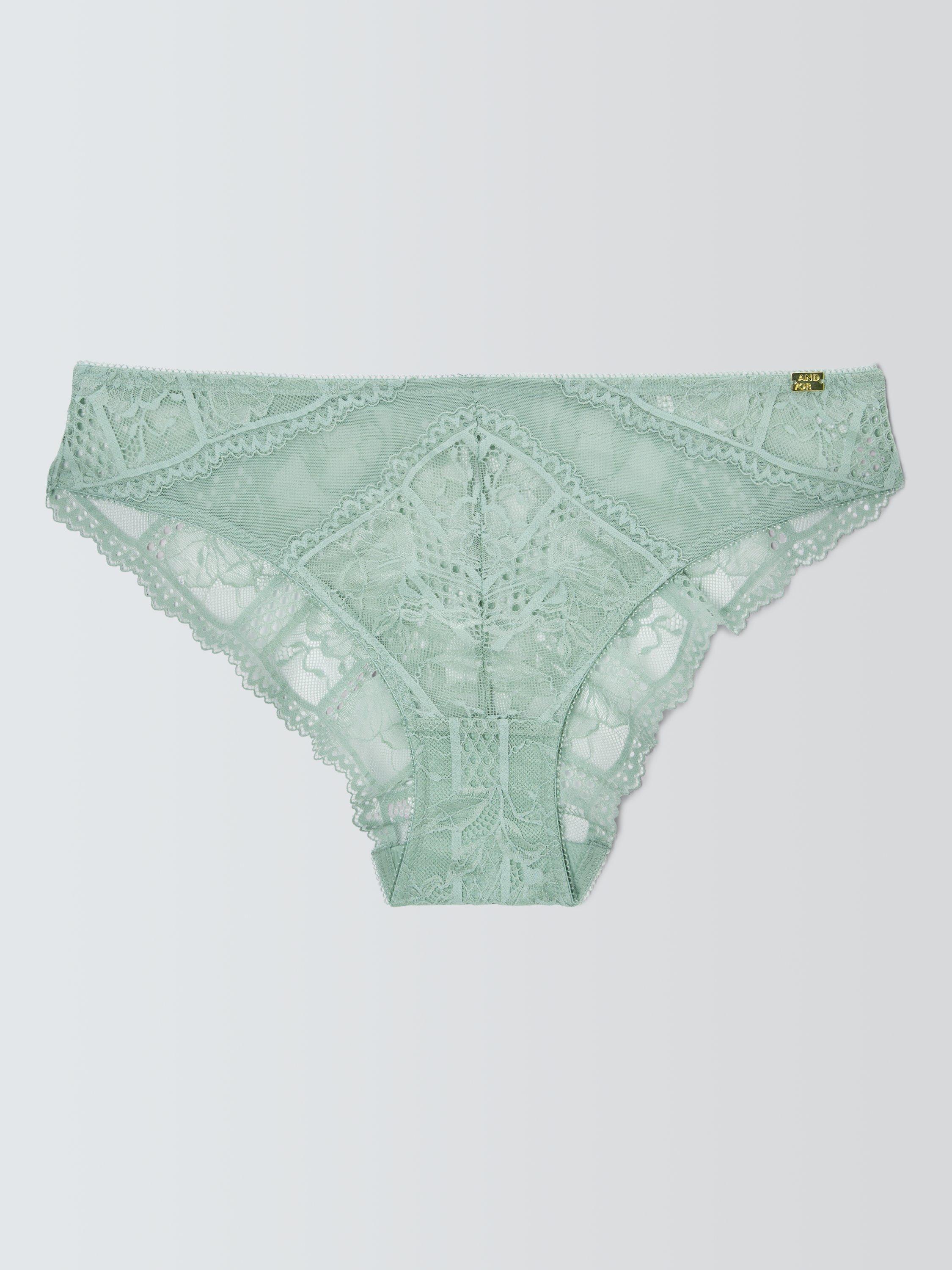 Sitting comfortably at the hip, the AND/OR Jodie knickers feature a mix of different mesh and floral embroidery. Scalloped lace edges and picot trim are combined, and the medium-coverage knickers are finished with the signature AND/OR gold tab at the left hip.