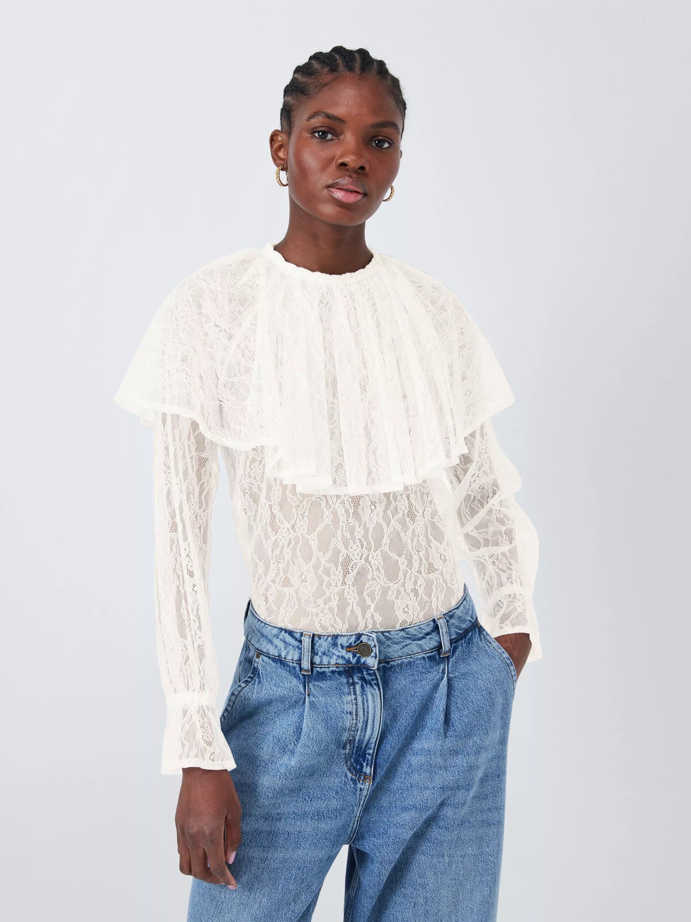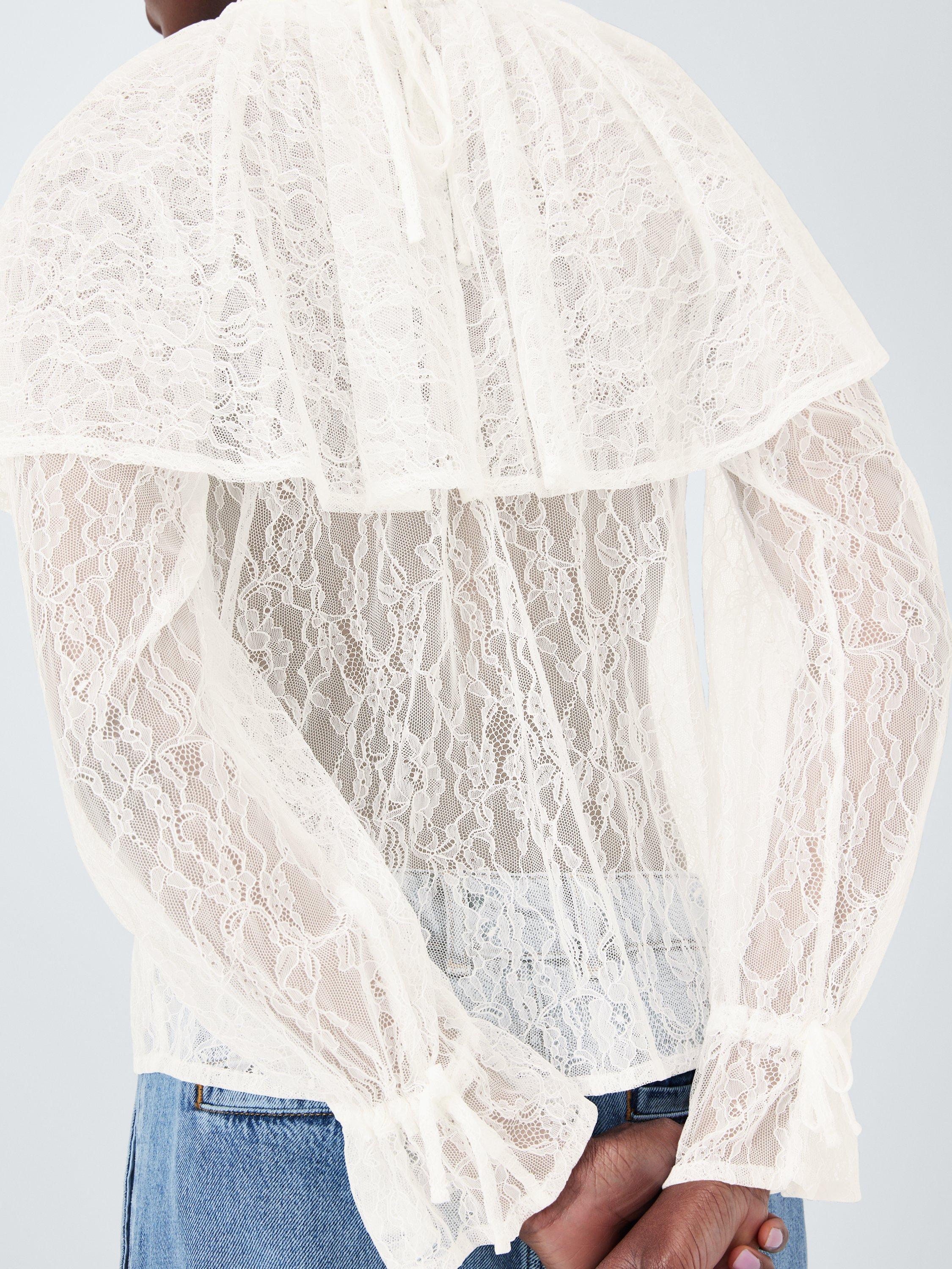 - Lace crepe long sleeve top