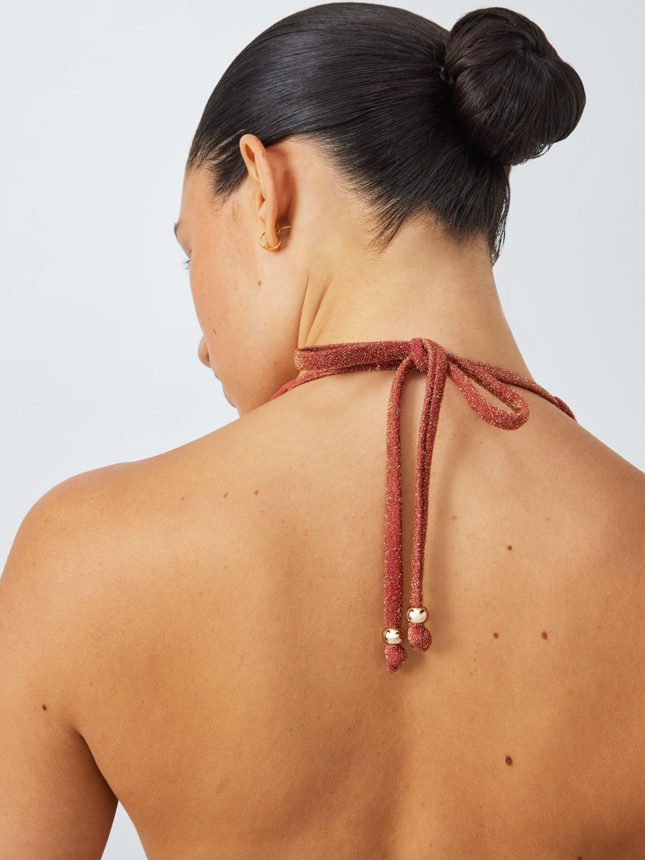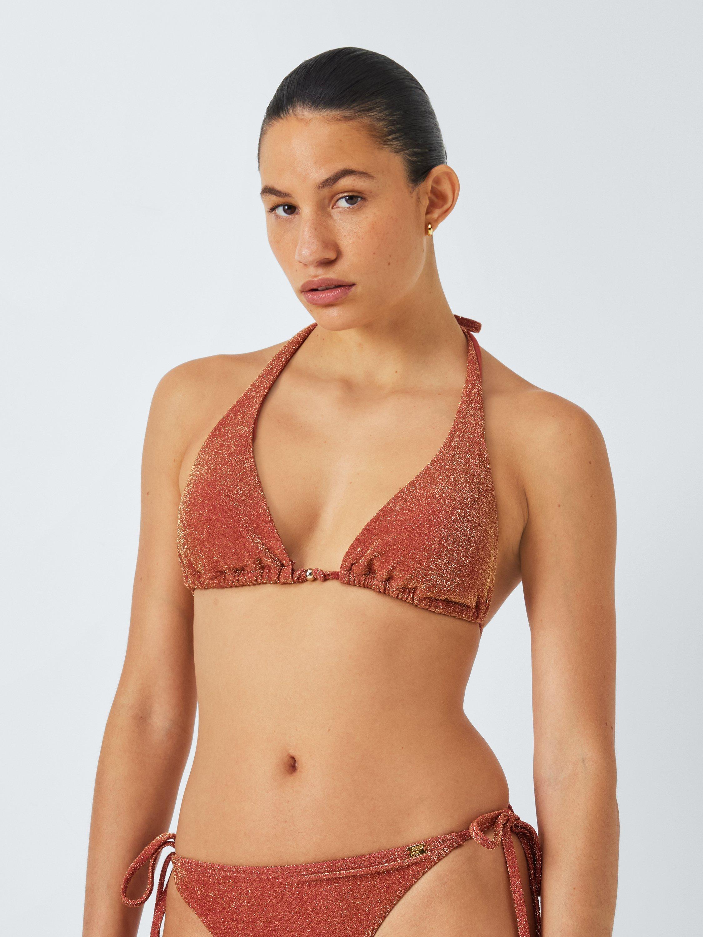 Adding shimmer to your swimwear, this bikini top is made with a lurex fabric that will glint in the sunshine. Removable padding in the cups gives you the option of extra shaping.