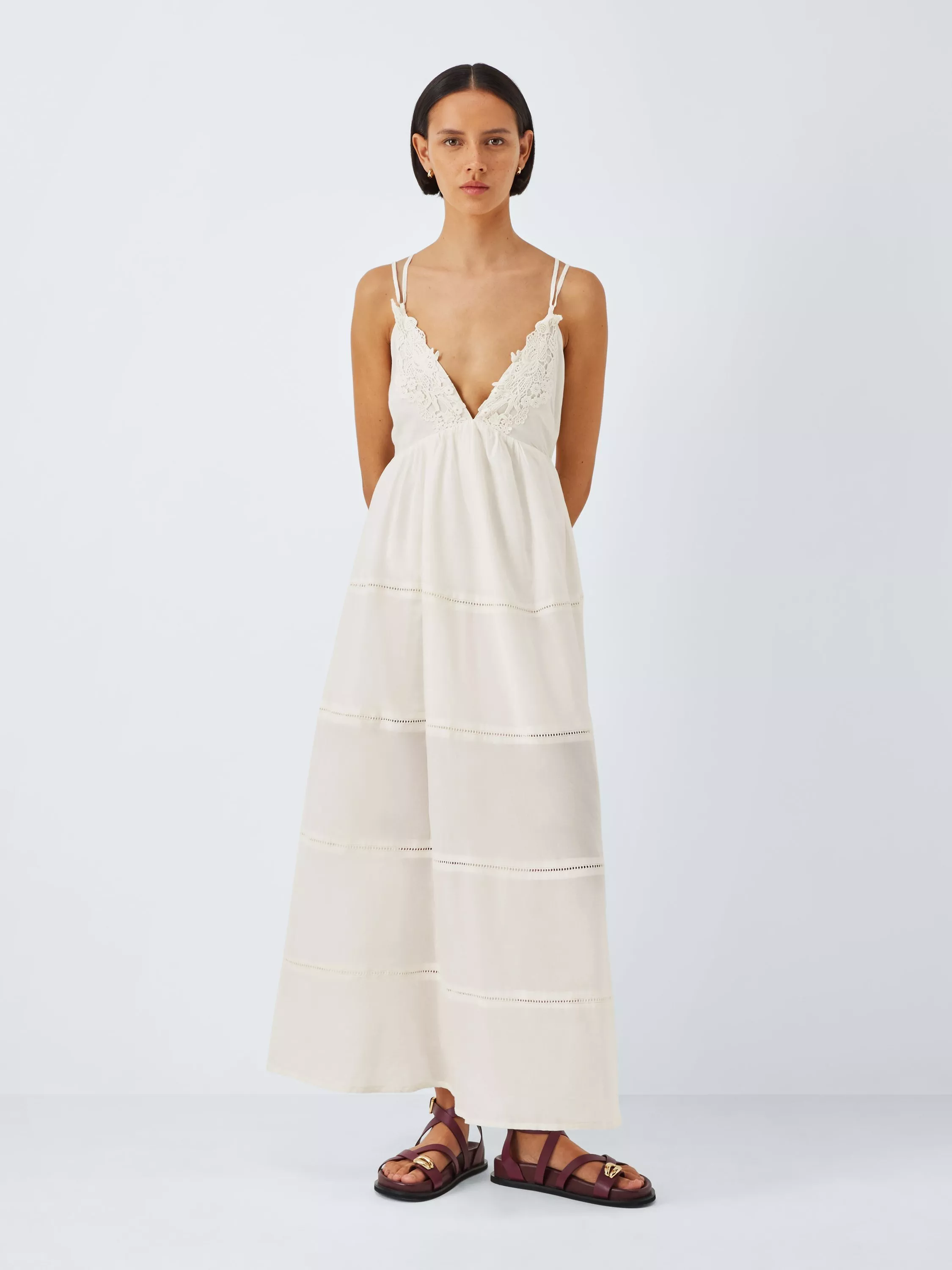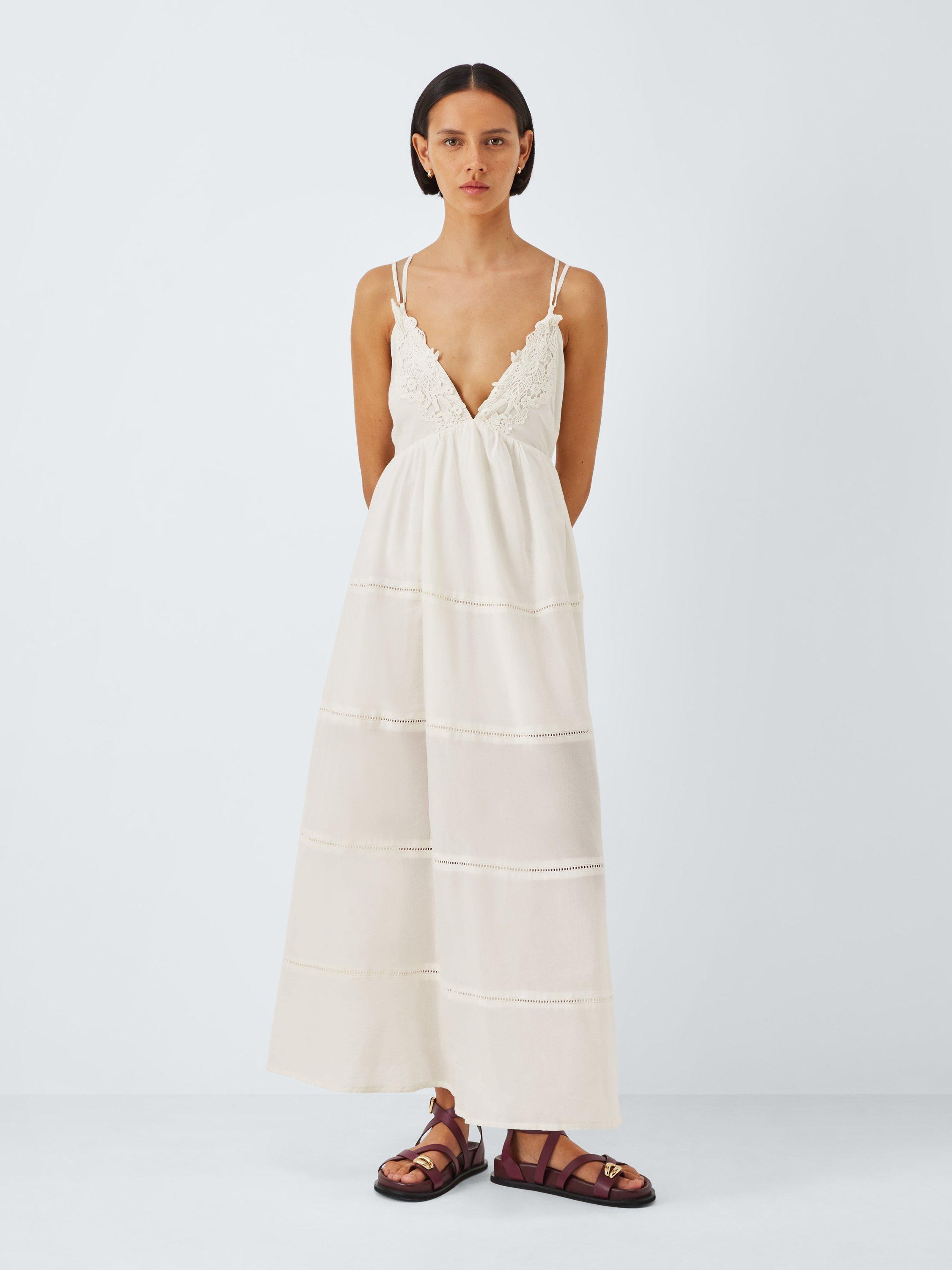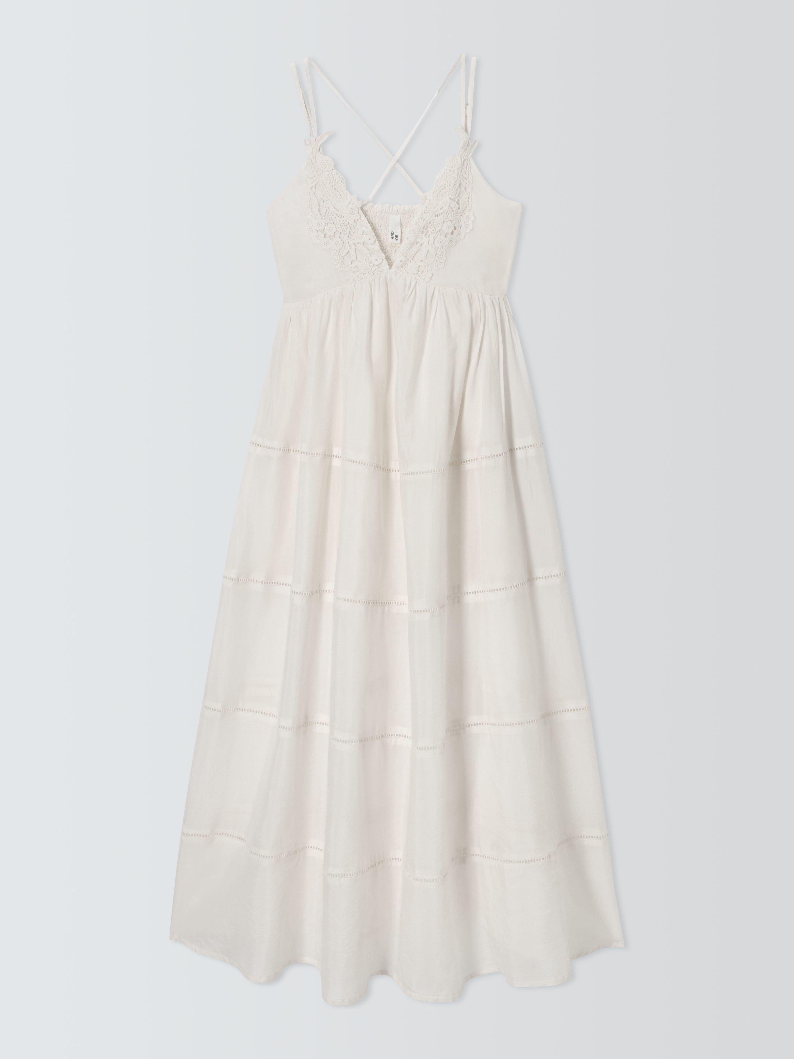 For sunny days and warm evenings, the Milos maxi dress is a versatile summer piece. It's made from a cotton/viscose blend for a balance of softness and breathability that will keep you feeling fresh all day and features design elements like lace detail, a shirred back and ladder cut-outs add to the summery feel.