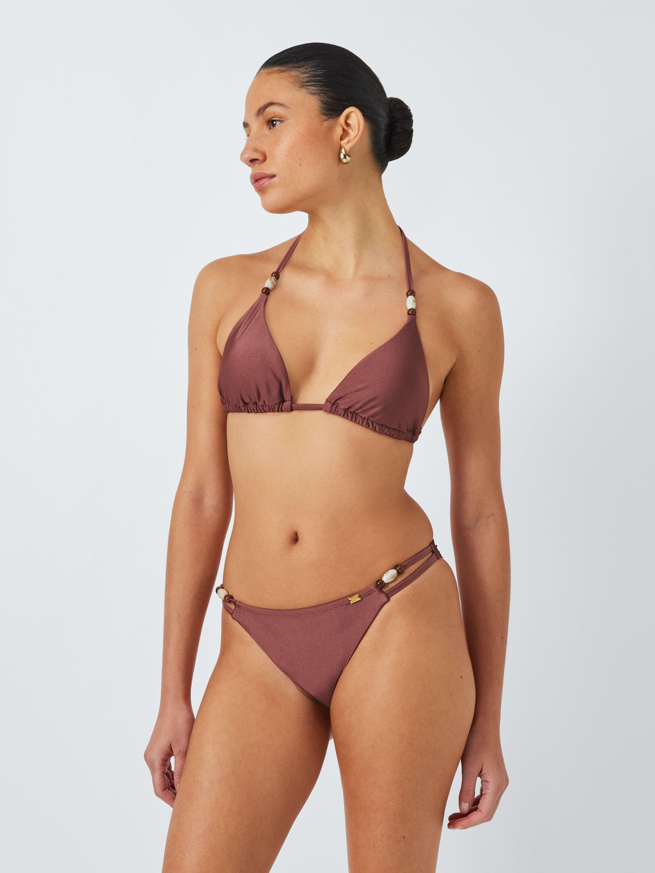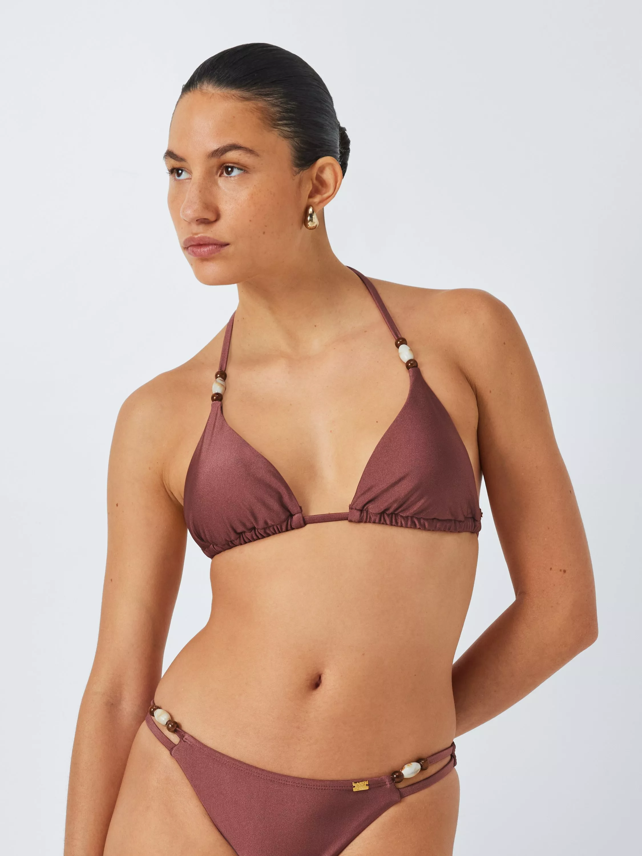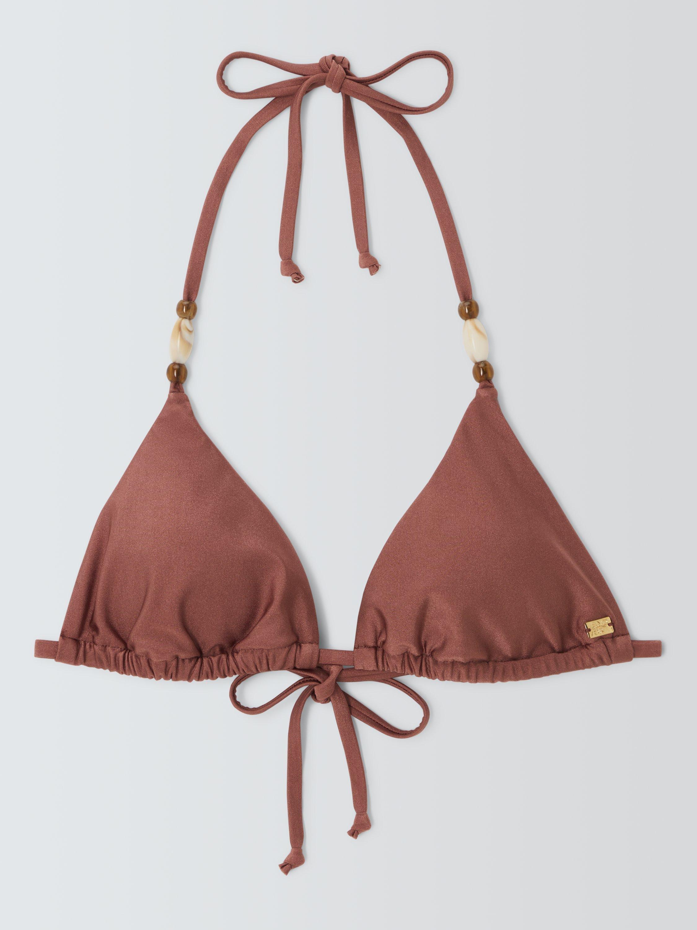 With a hint of shine in the fabric, Monaco is a triangle bikini top with removable padding in the cups for shaping. Beads at the apex are a simple addition that adds a touch of the traveller.