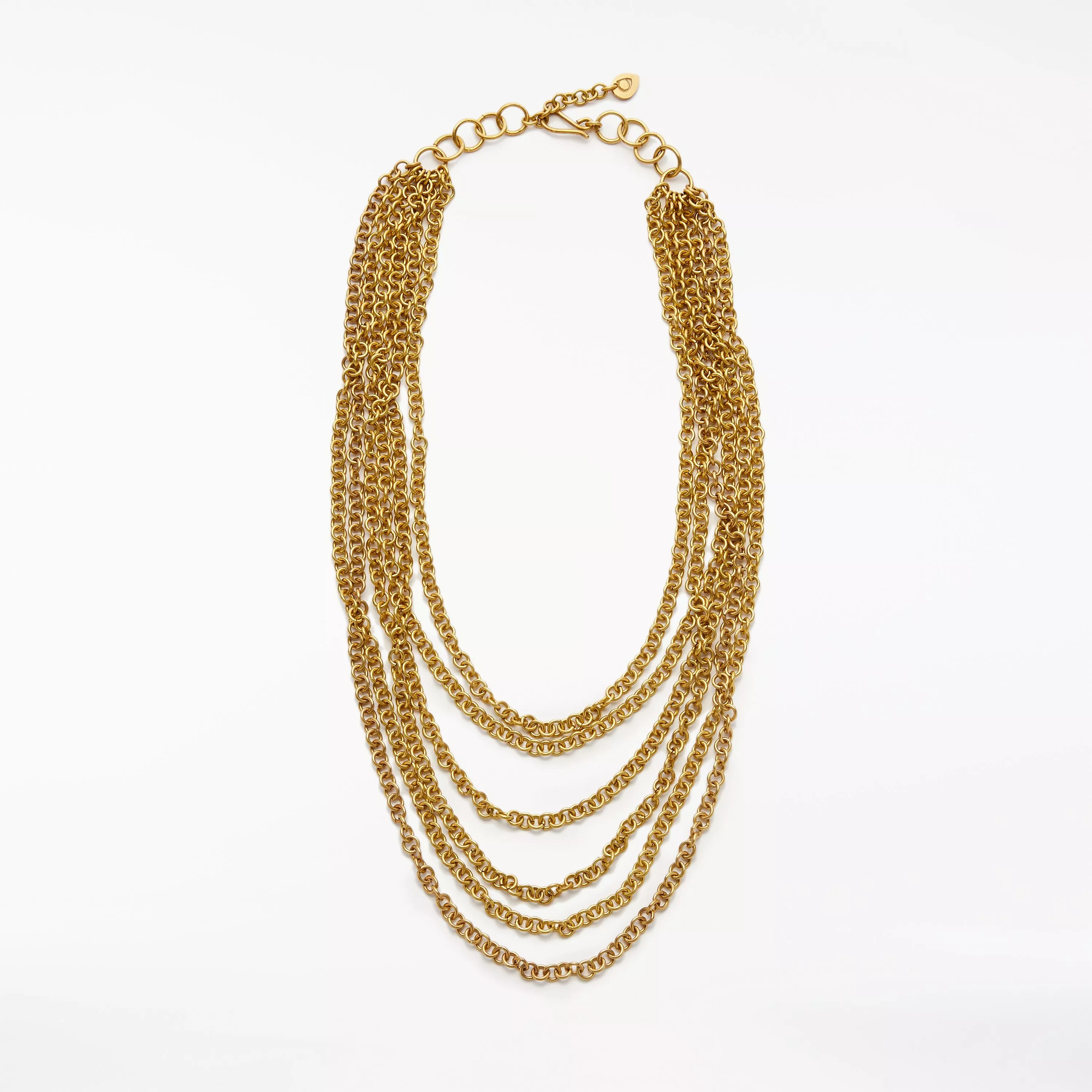 The chunky design comes with multiple chains arranged in a graduating fashion to create the perfect layered look. The necklace features an adjustable extension and a hook clasp.