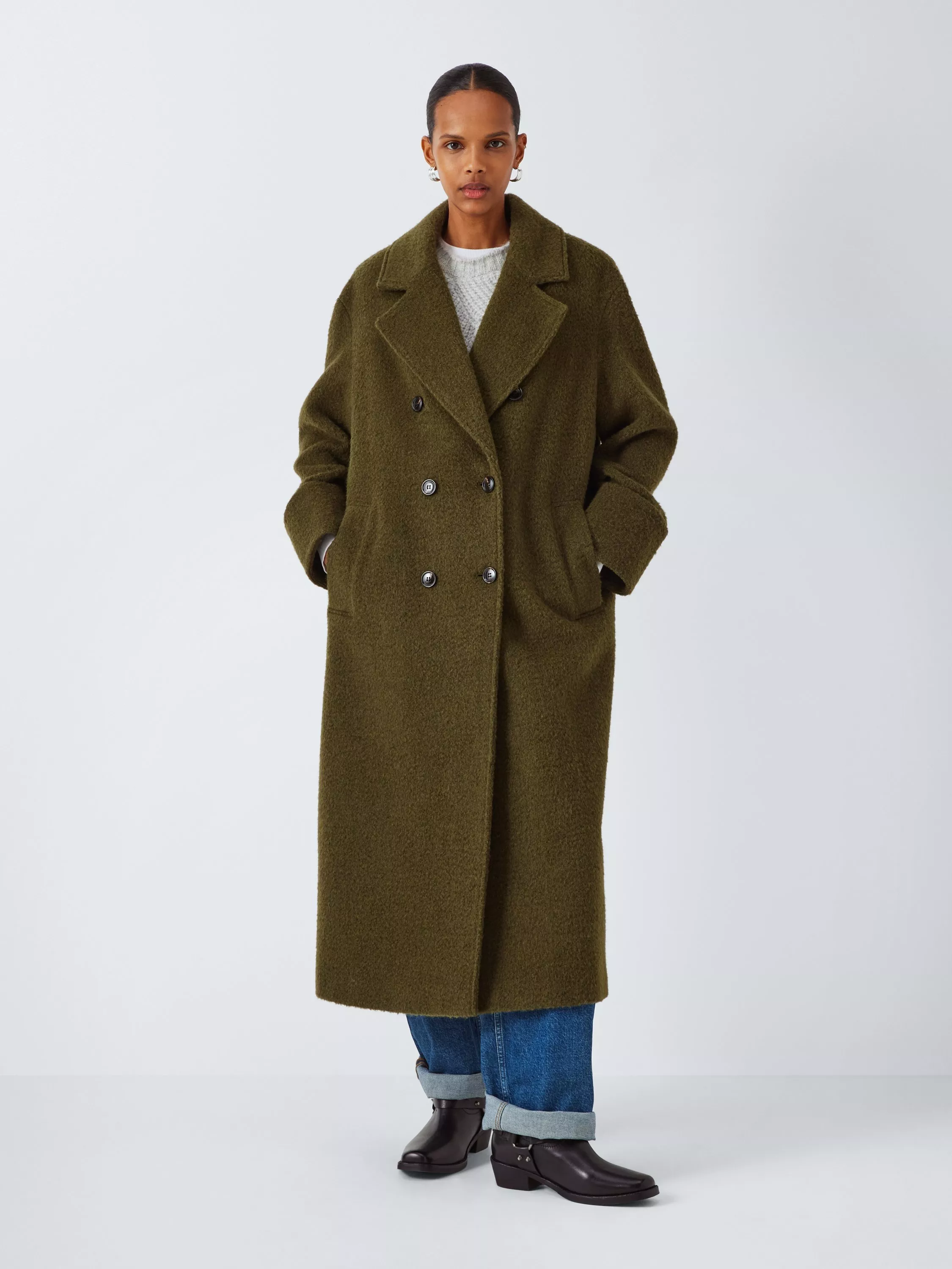 AND/ORRaya Textured Wool Rich Coat, Olive