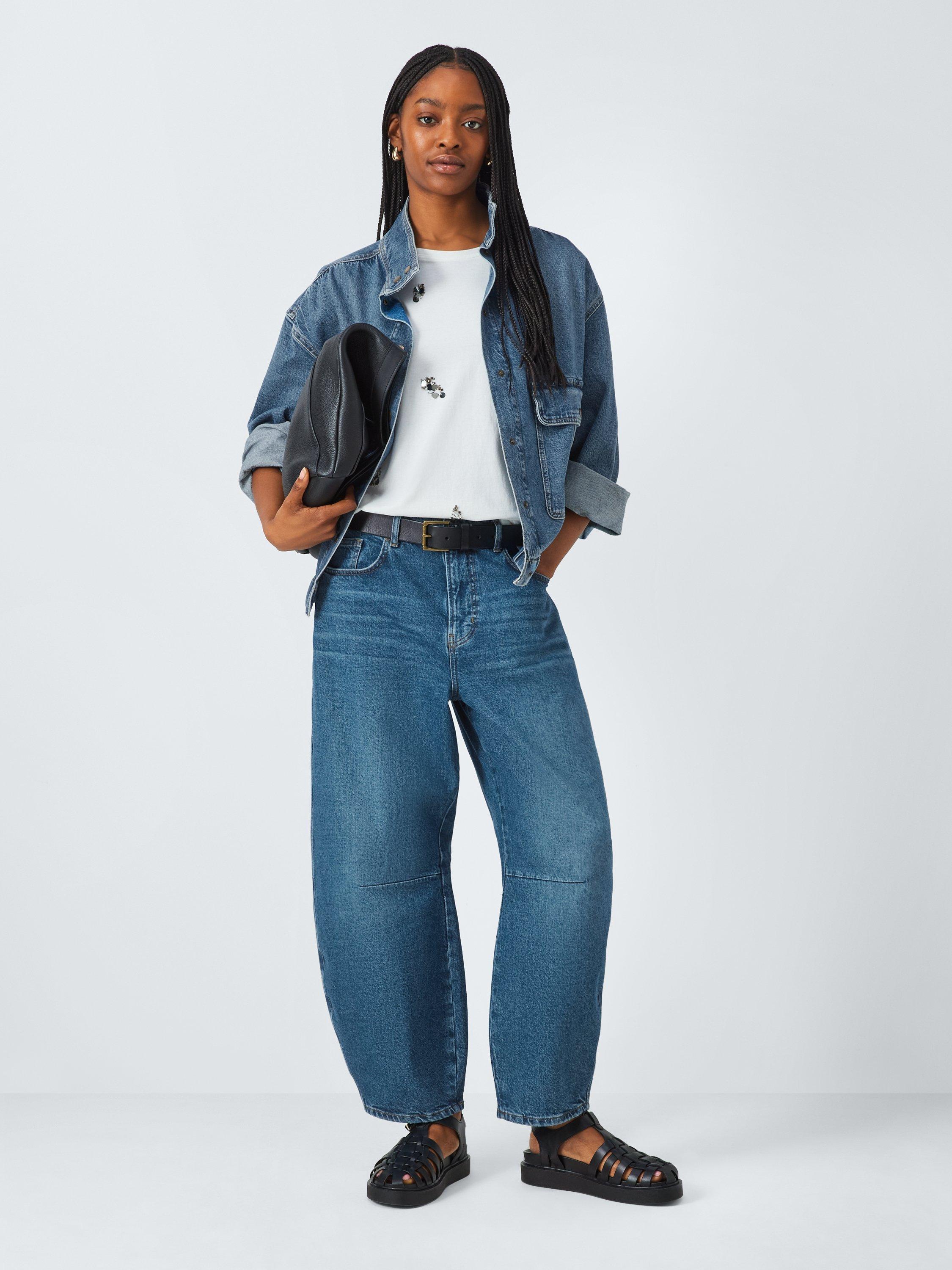 - Relaxed barrel leg jeans