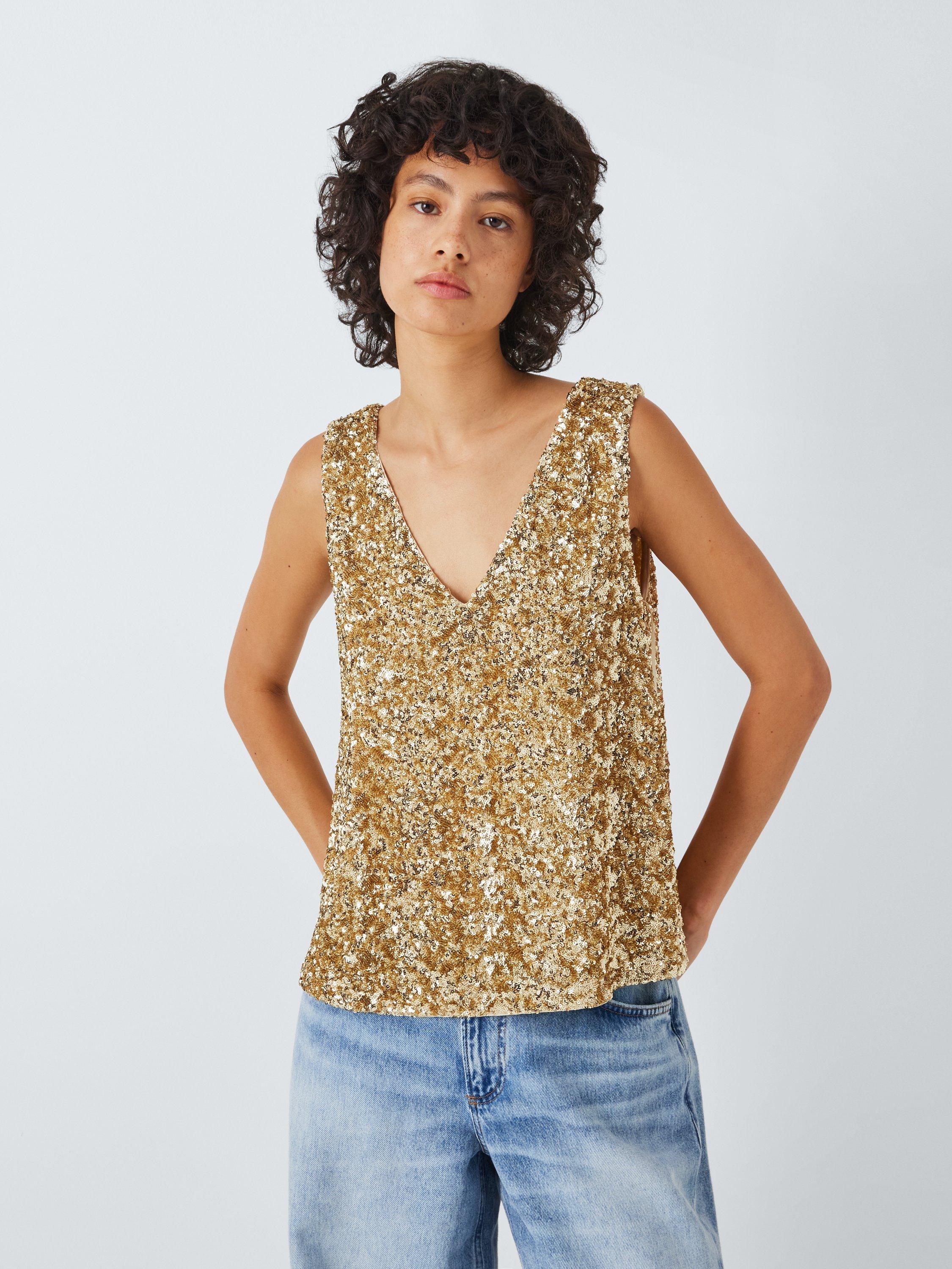 AND/ORSheridan Sequin Vest Top, Gold