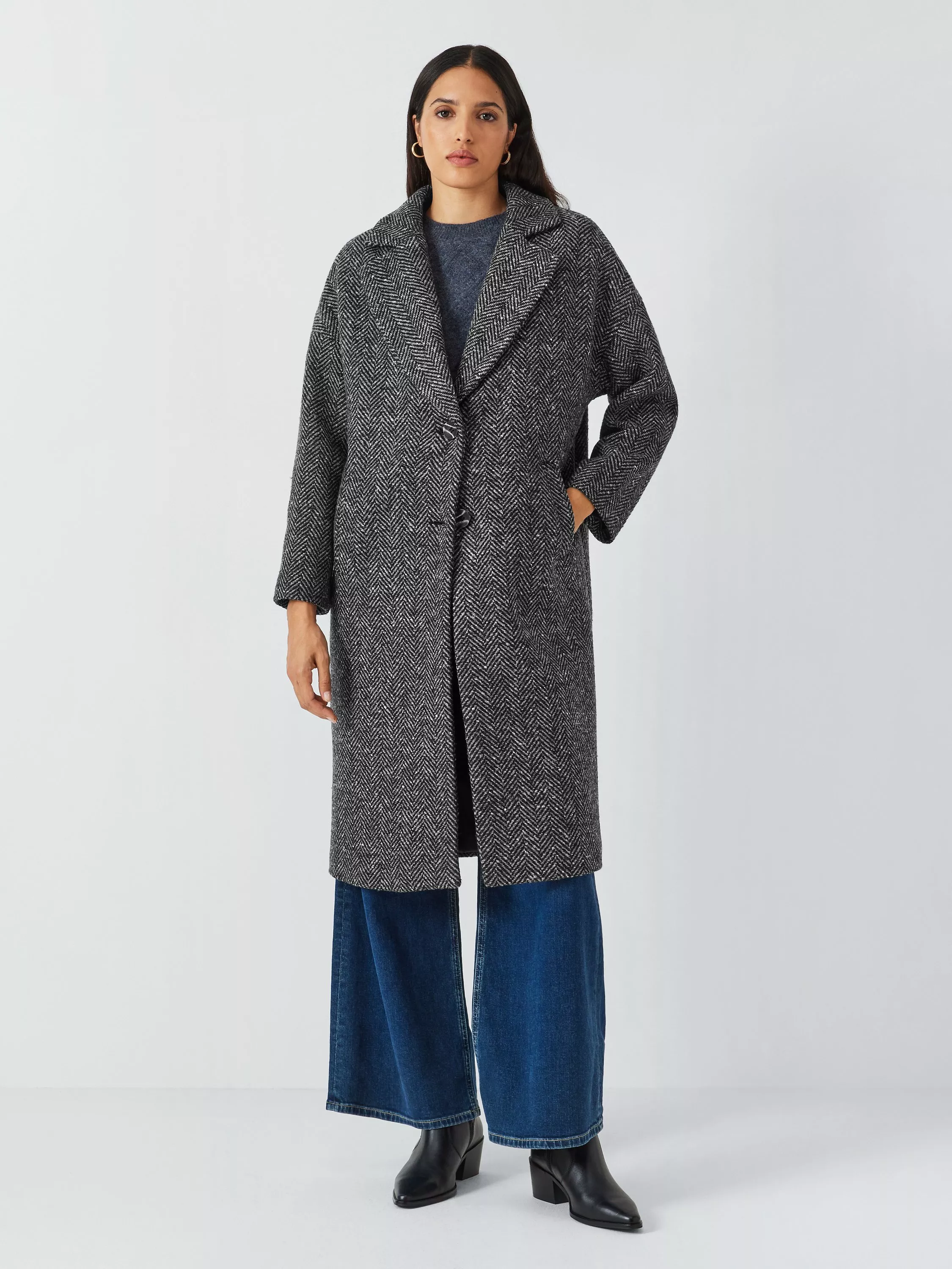 With an ageless appeal thanks to the sophisticated herringbone print throughout, this coat is made from a wool-blend & comes in a nonchalant, straight cut with tonal button detailing & functional side pockets.