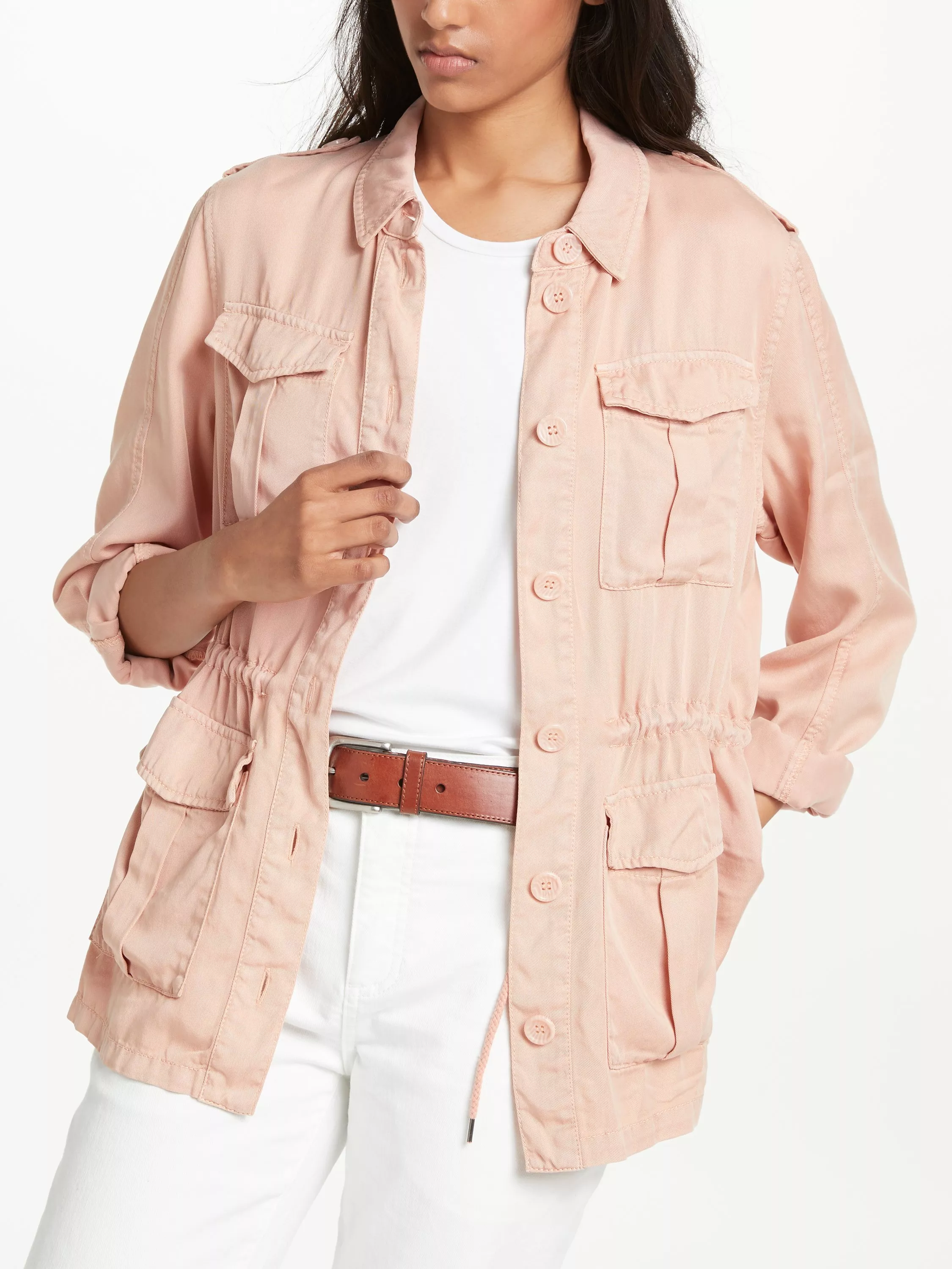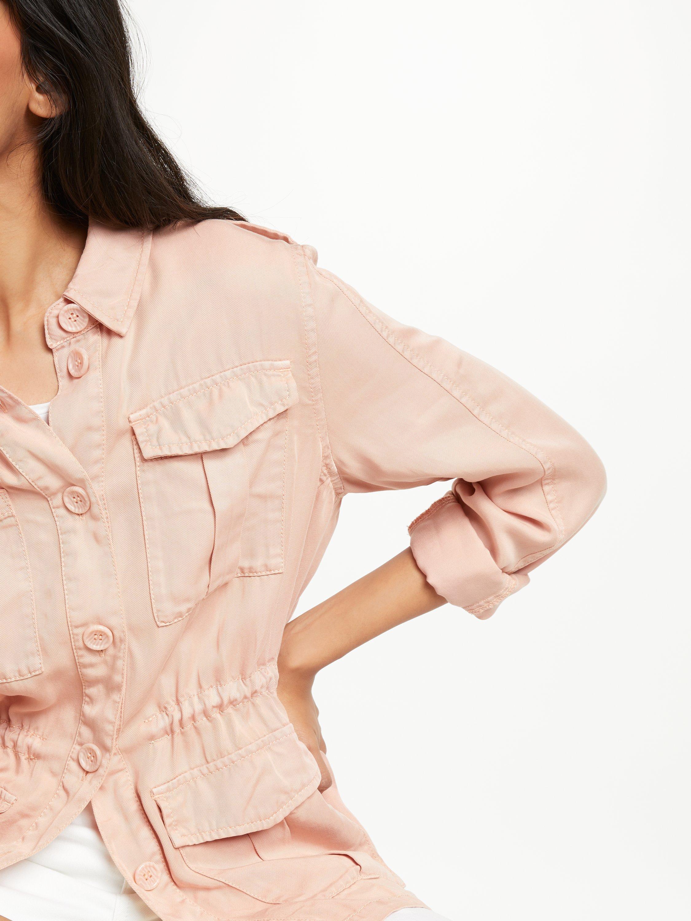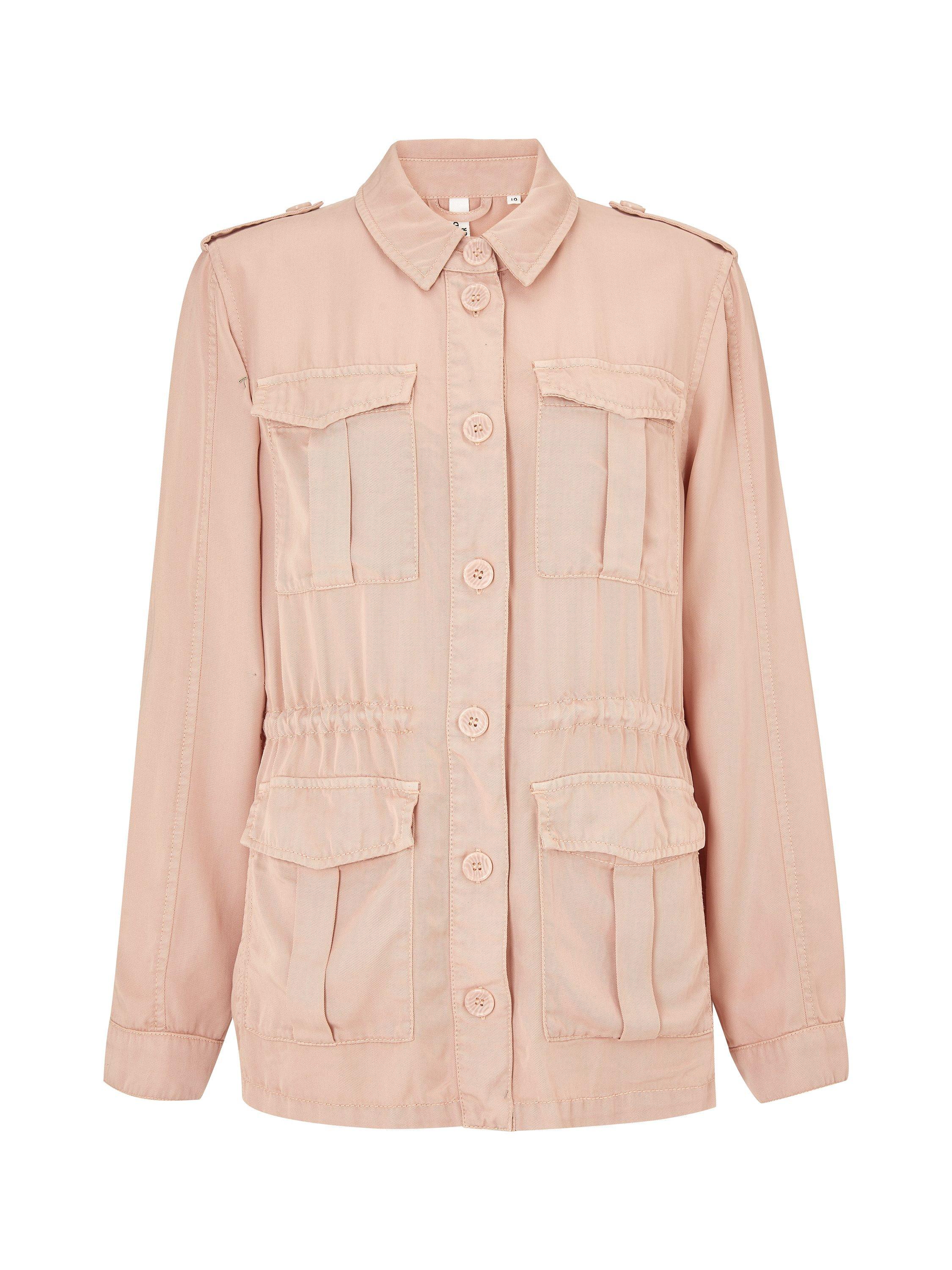 Crafted from a lightweight blend, this jacket features a washed effect, draped fit and a drawstring waist to accentuate your figure beautifully. Front pockets and a button through front fastening complete this style.