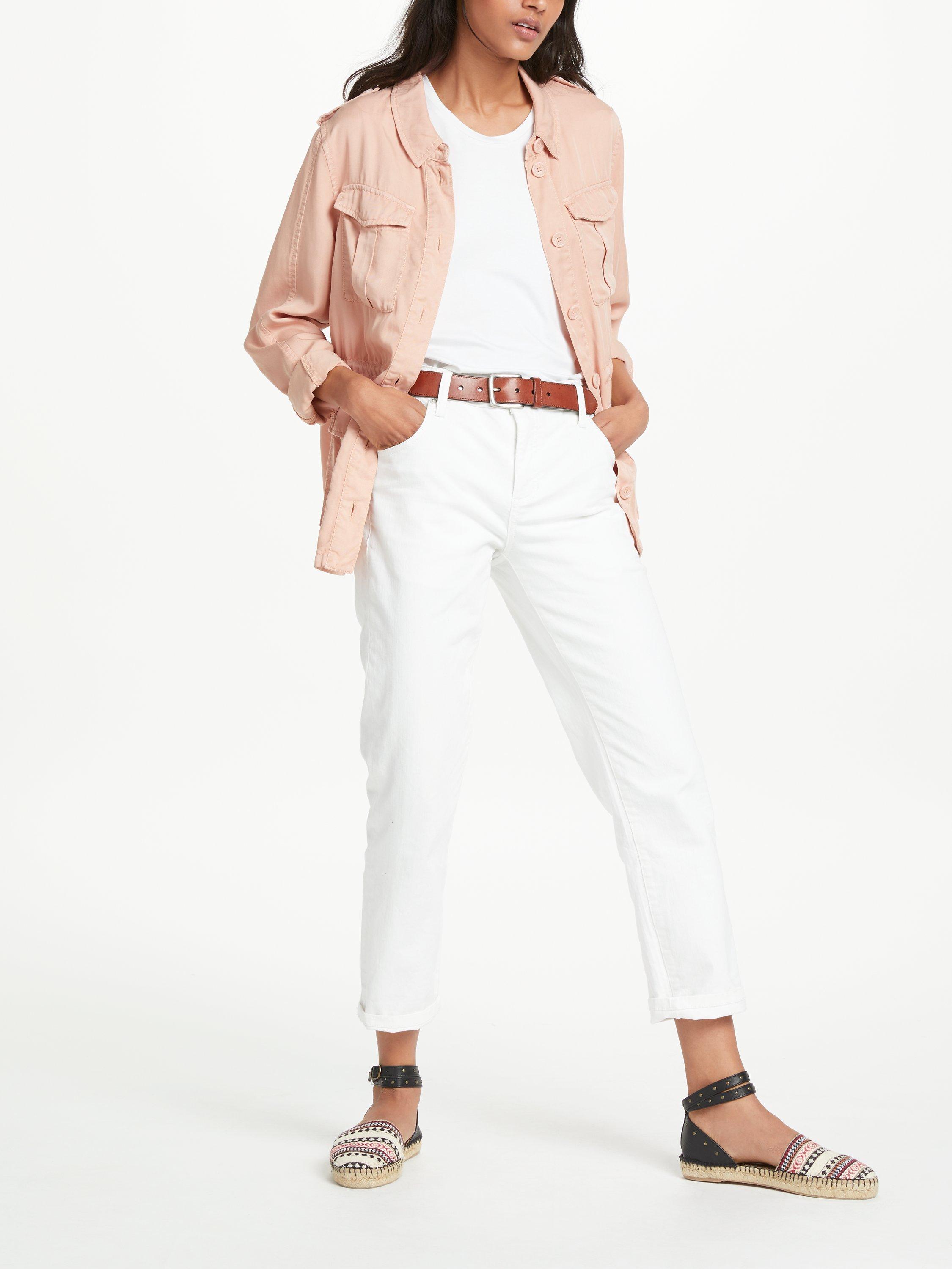 Embrace your creative side with accessories and add an ethnic print fringed scarf, raw edge denim and suede ankle boots.
