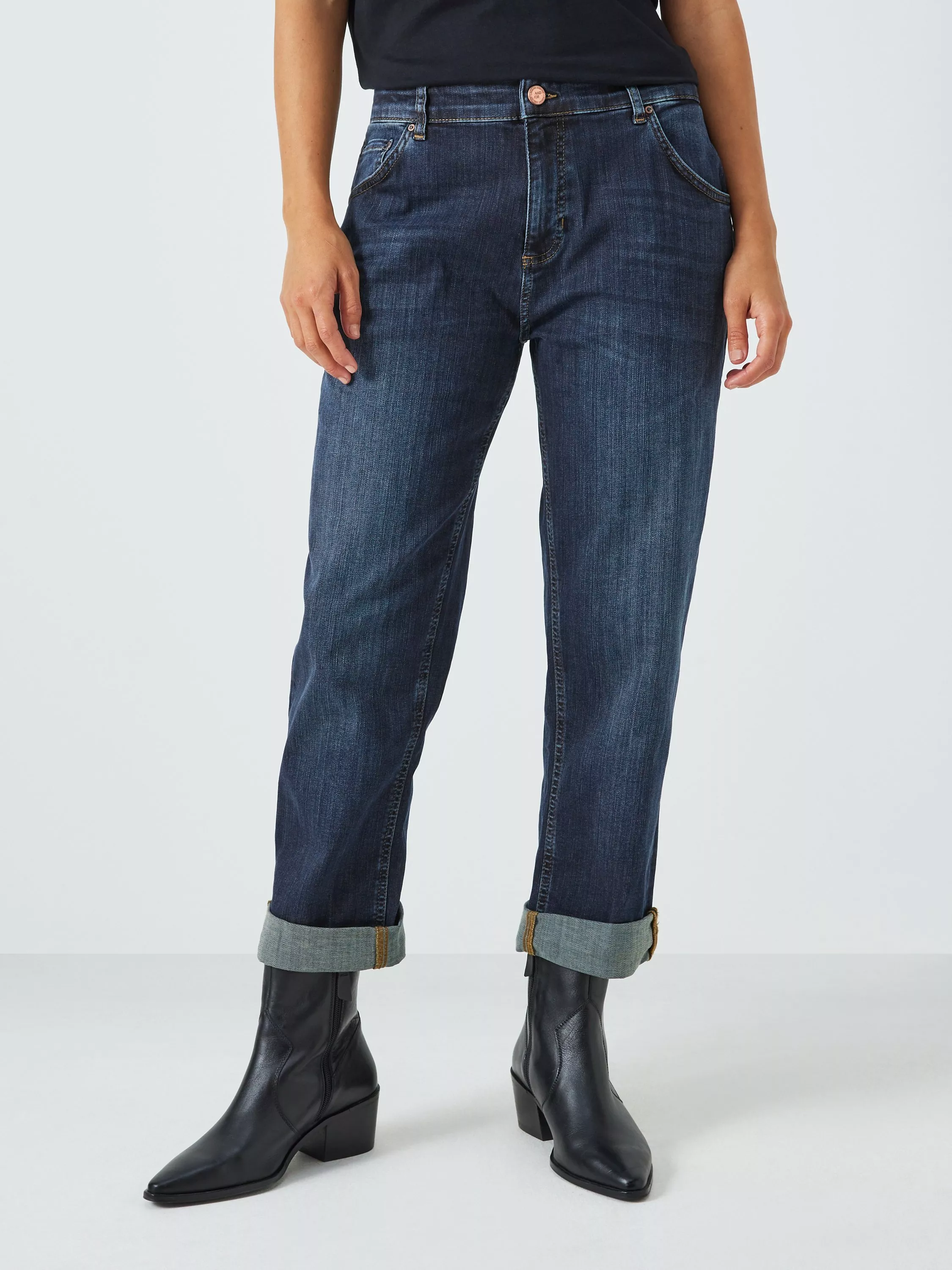 Sitting naturally at the waist for a comfortable fit, these boyfriend cut jeans come in a dark blue wash for versatility, while a classic 5-pocket design, zip fly and button fastening and belt loops completes this style staple.