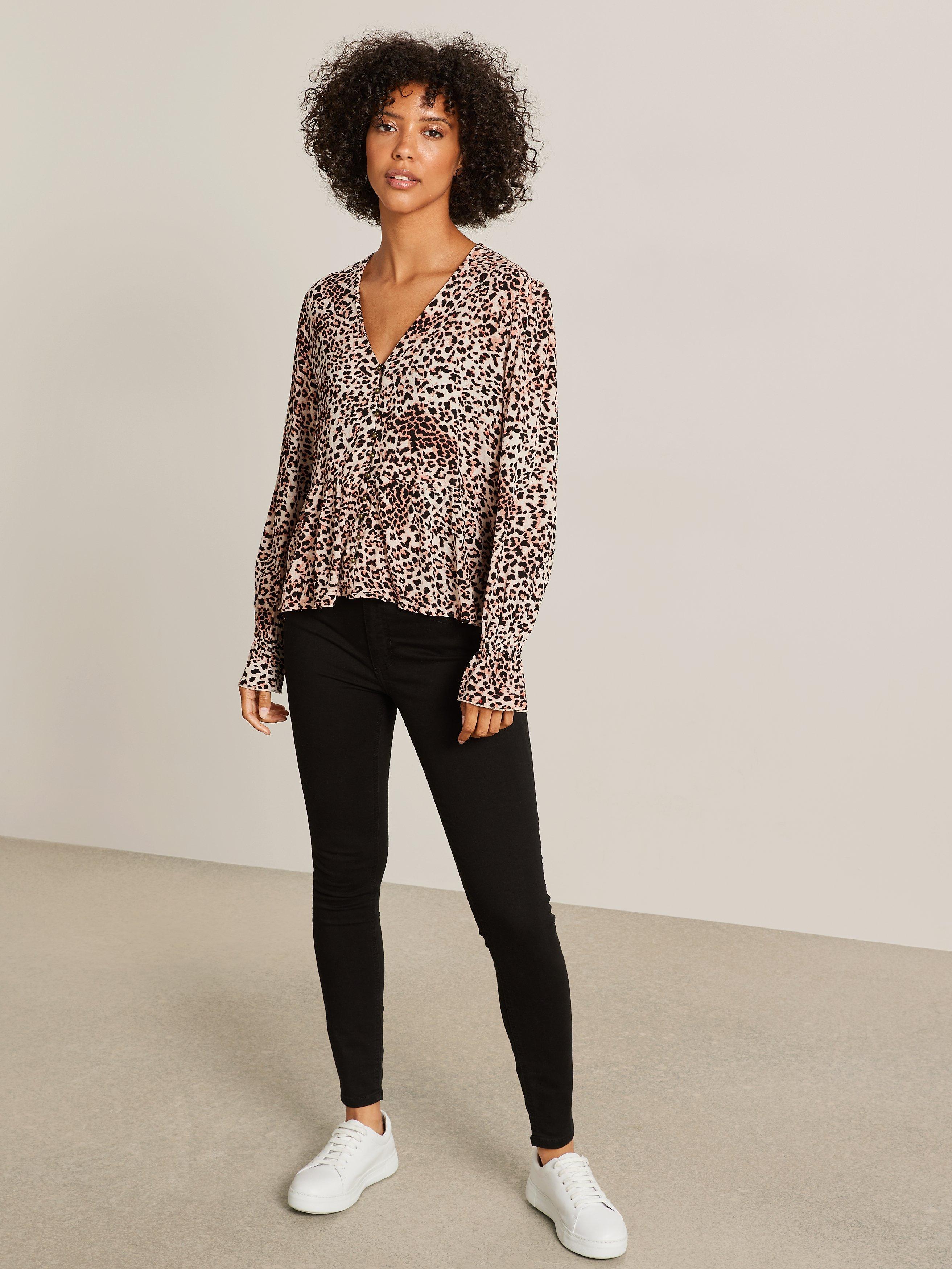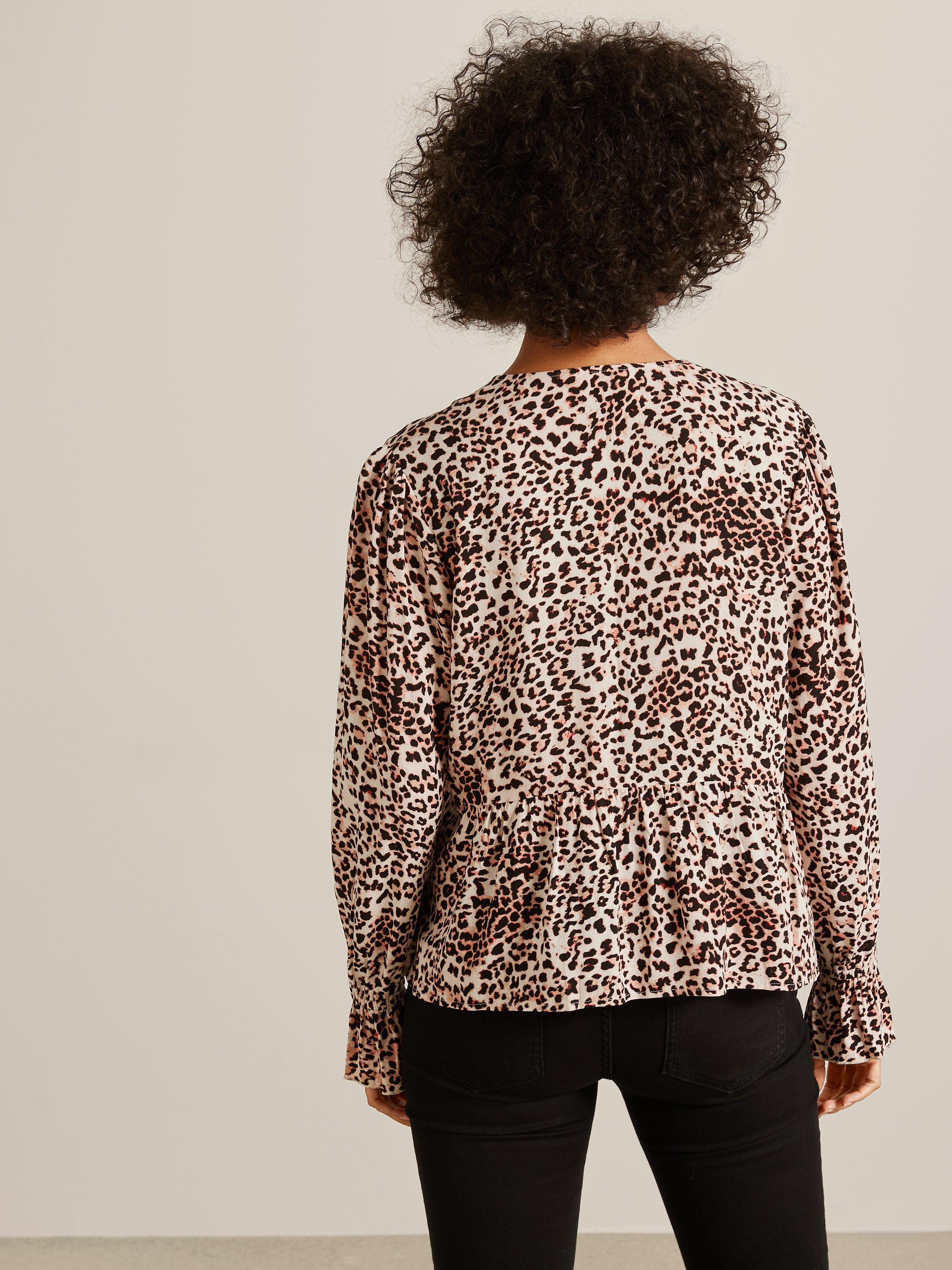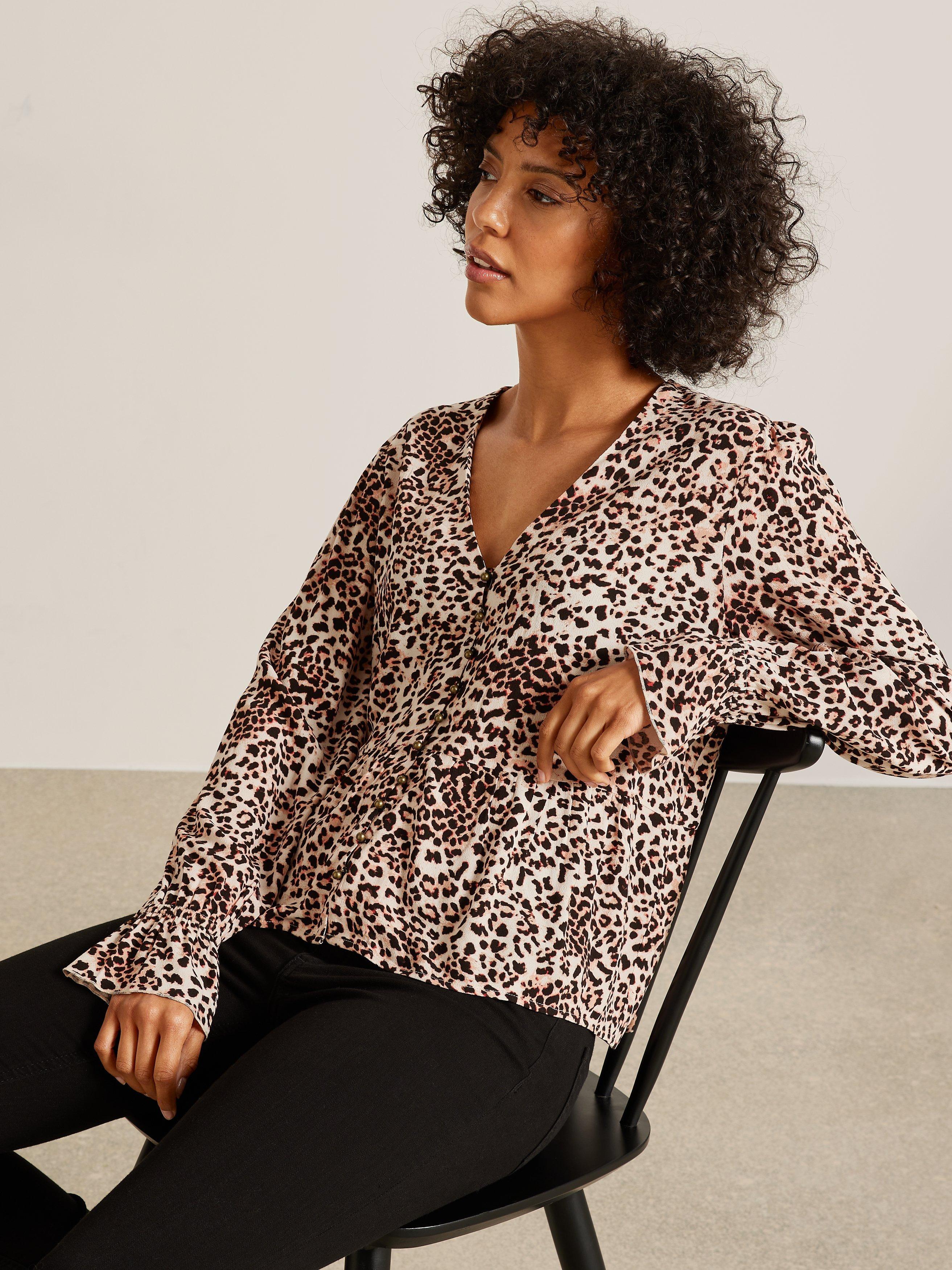 Your perfect go-to piece for smart and casual occasions alike, the Zoe Blouse from AND/OR showcases a contemporary take on classic leopard print and is completed with sweet little details like the peplum cuffs and brass-toned buttons.