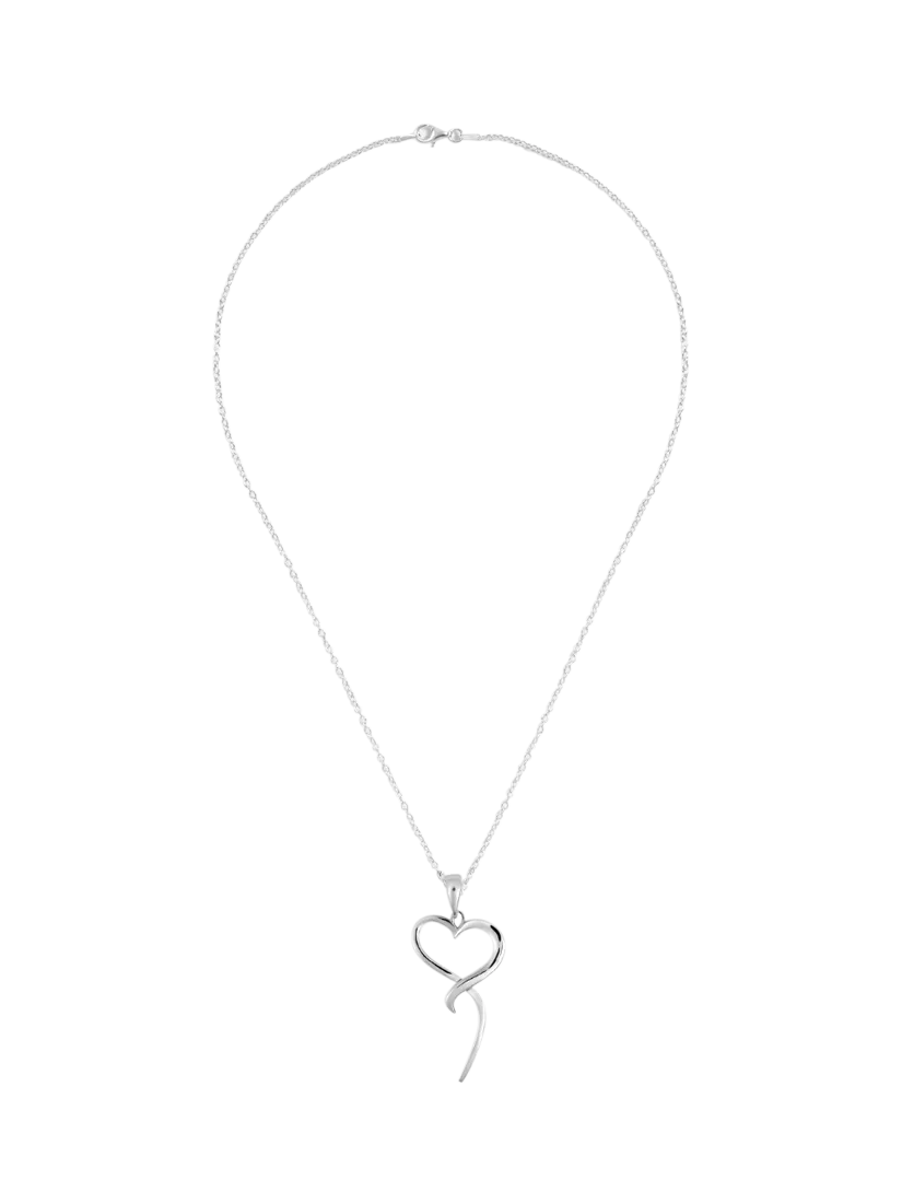 A funky open heart pendant is suspended on an open link chain. A lovely imaginative piece.