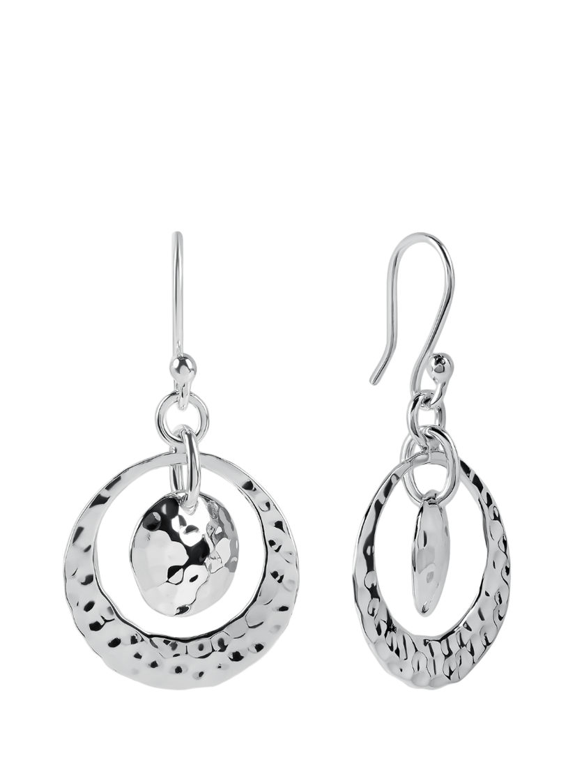 A pretty pair of drop earrings that have a central moving disc. Hammered, they have a lovely shimmer and sparkle.