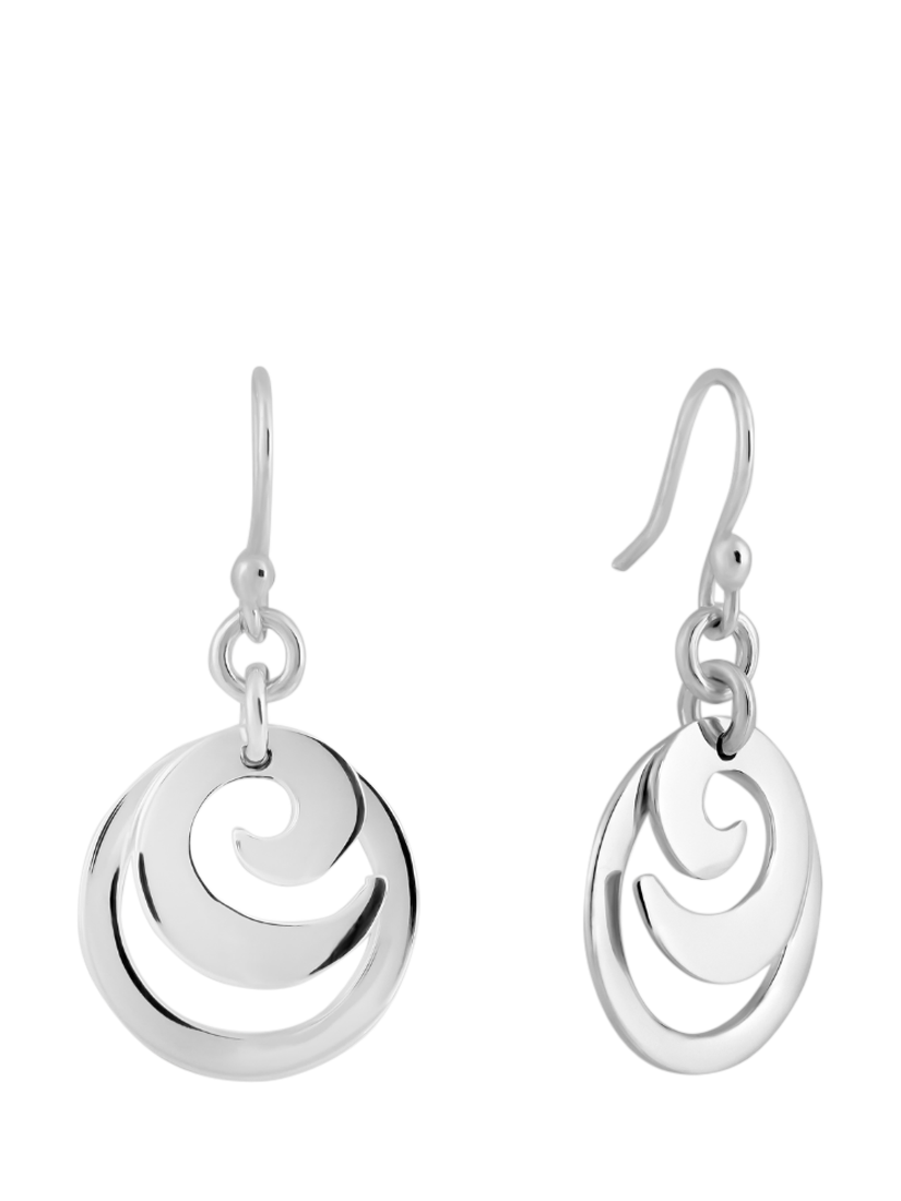 An eye catching design comprising of two independently moving pieces on a silver ear wire.