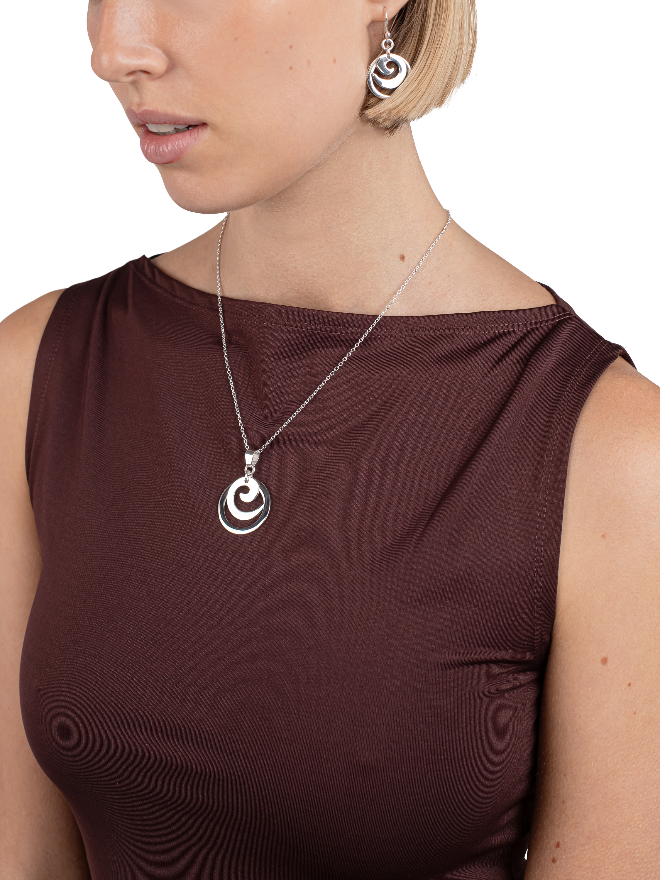 This unique accessory has a matching pendant necklace.