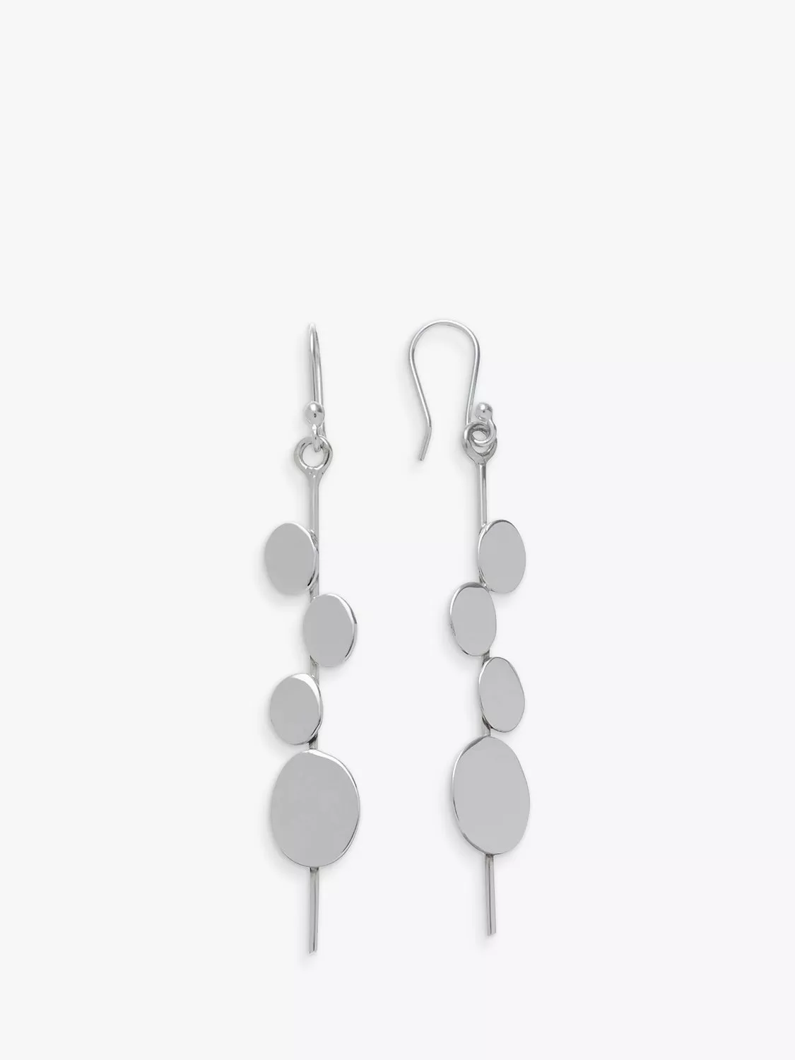 Inspired by art deco style, these sterling silver drop earrings from Andea feature discs of differing sizes on a sterling silver frame with hook fixings.