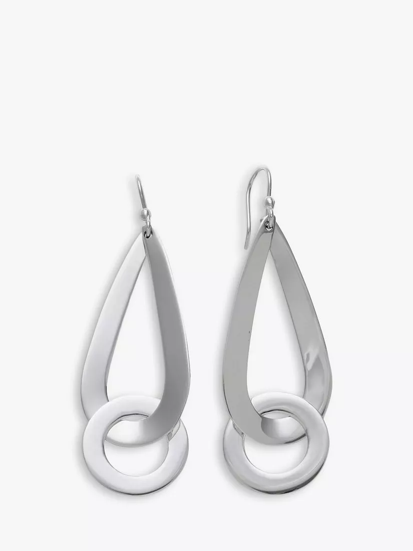 Featuring a sterling silver design, these smart and stylish earrings from Andea feature a large open teardrop with a circle hanging from the loop. They are completed with hoop fixings.