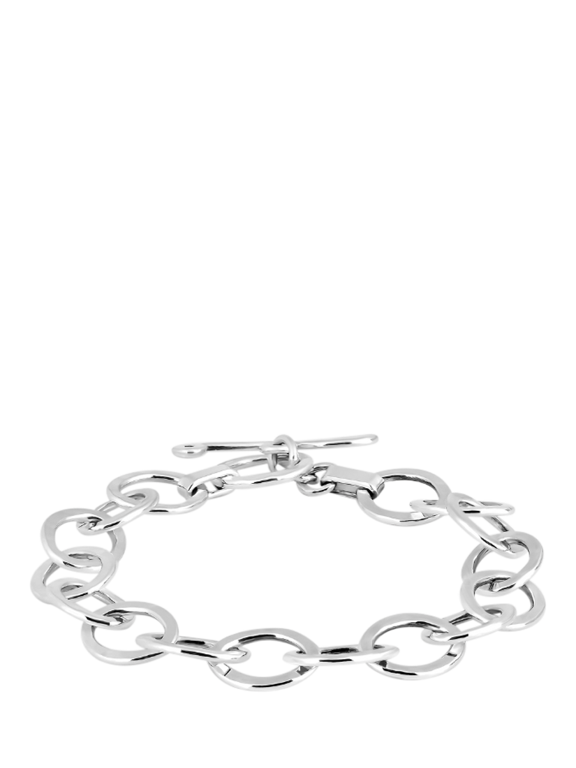 A bold and shiny bracelet from Andea crafted entirely from sterling silver and featuring outline ovals that have been gently hammered to produce a textured finish. Sure to add some style to any outfit, the bracelet secures with a toggle clasp.