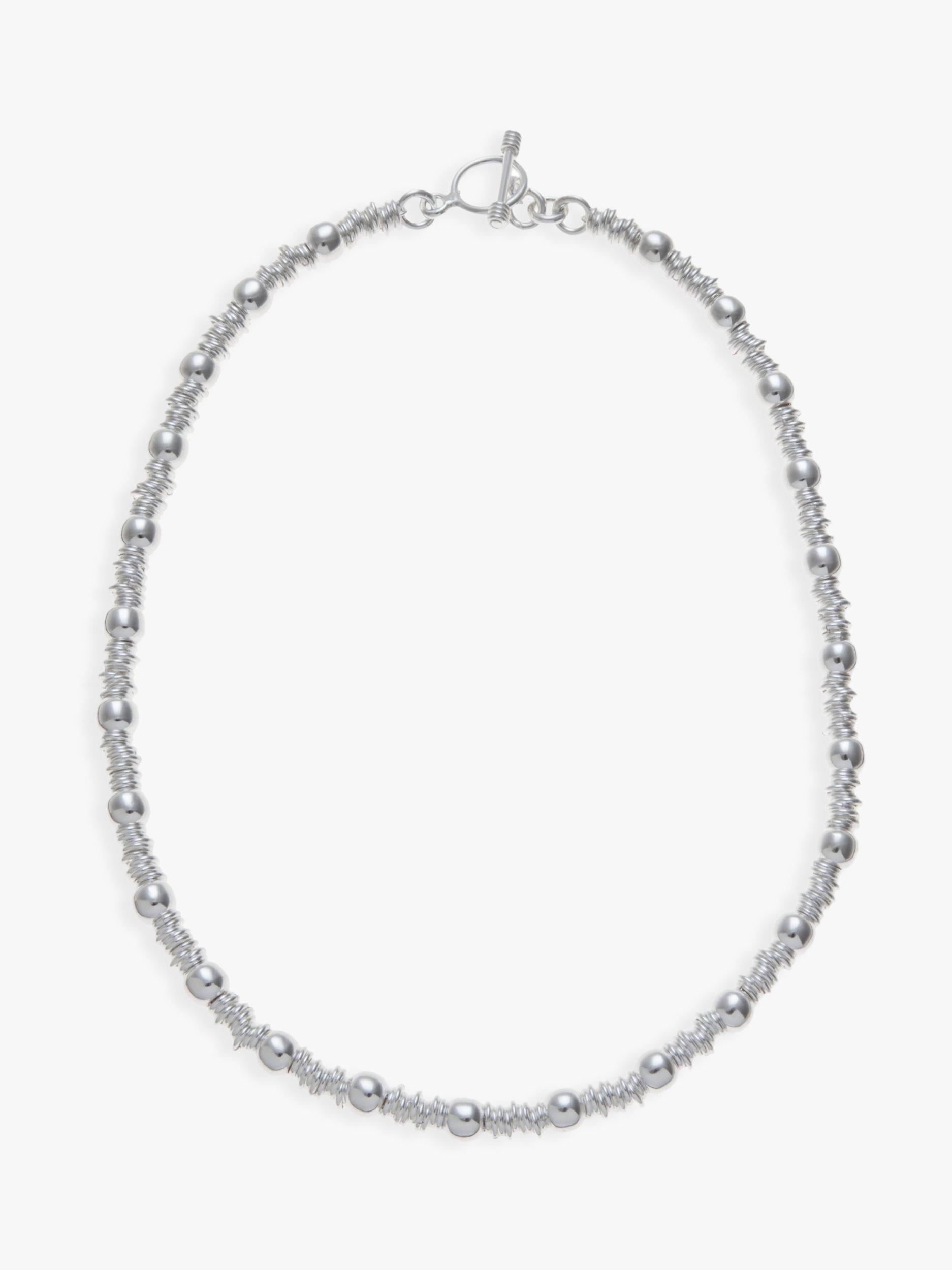 A shiny ring and ball necklace from Andea that has been crafted from sterling silver with shimmering balls and rings on a sterling silver chain. Pretty and sure to add a touch of shine to any outfit.