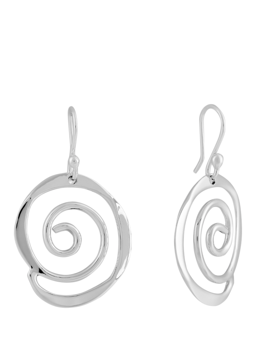 These lovely sculptured spiral drop earrings are crafted from sterling silver and will add shine to any outfit. With hoop fixings.