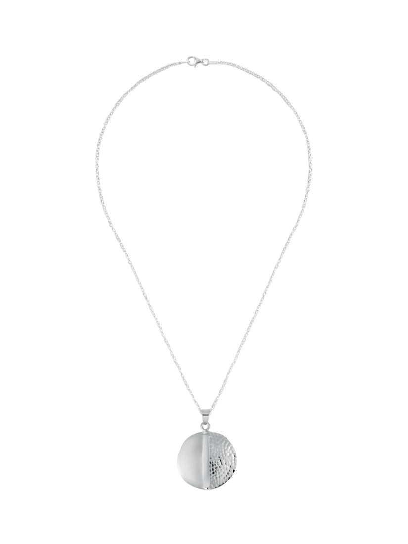 A pretty pendant necklace from Andea featuring a sterling silver chain with a mixed half smooth and half textured circular pendant. It is sure to add a touch of style to any outfit and secures with a lobster clasp.