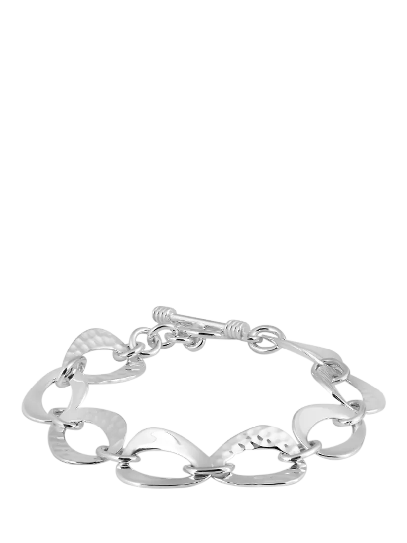 A lovely bracelet from Andea featuring a chain of triangles, one side of which have been gently hammered to create a textured look whilst the opposite side has been left smooth and shiny. Crafted entirely from sterling silver, the chain secures with a toggle clasp.
